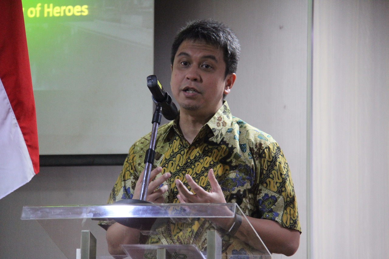 Managing Director Grab Ridzki Kramadibrata memberikan paparan di hadapan para mahasiswa ITS