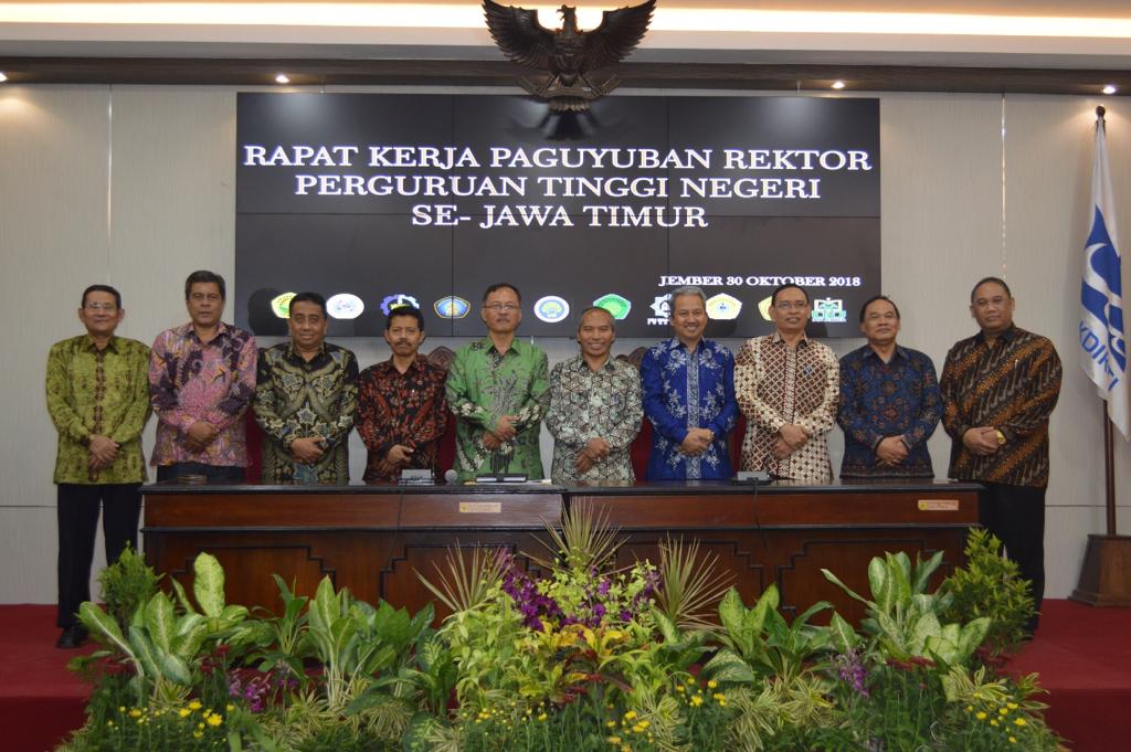 Jember, ITS News – Rektor dan wakil rektor dari 11 Perguruan Tinggi Negeri (PTN) di Jawa Timur hadiri kegiatan Rapat Kerja Paguyuban Rektor yang berlangsung di Universitas Negeri Jember, Selasa (30/10).