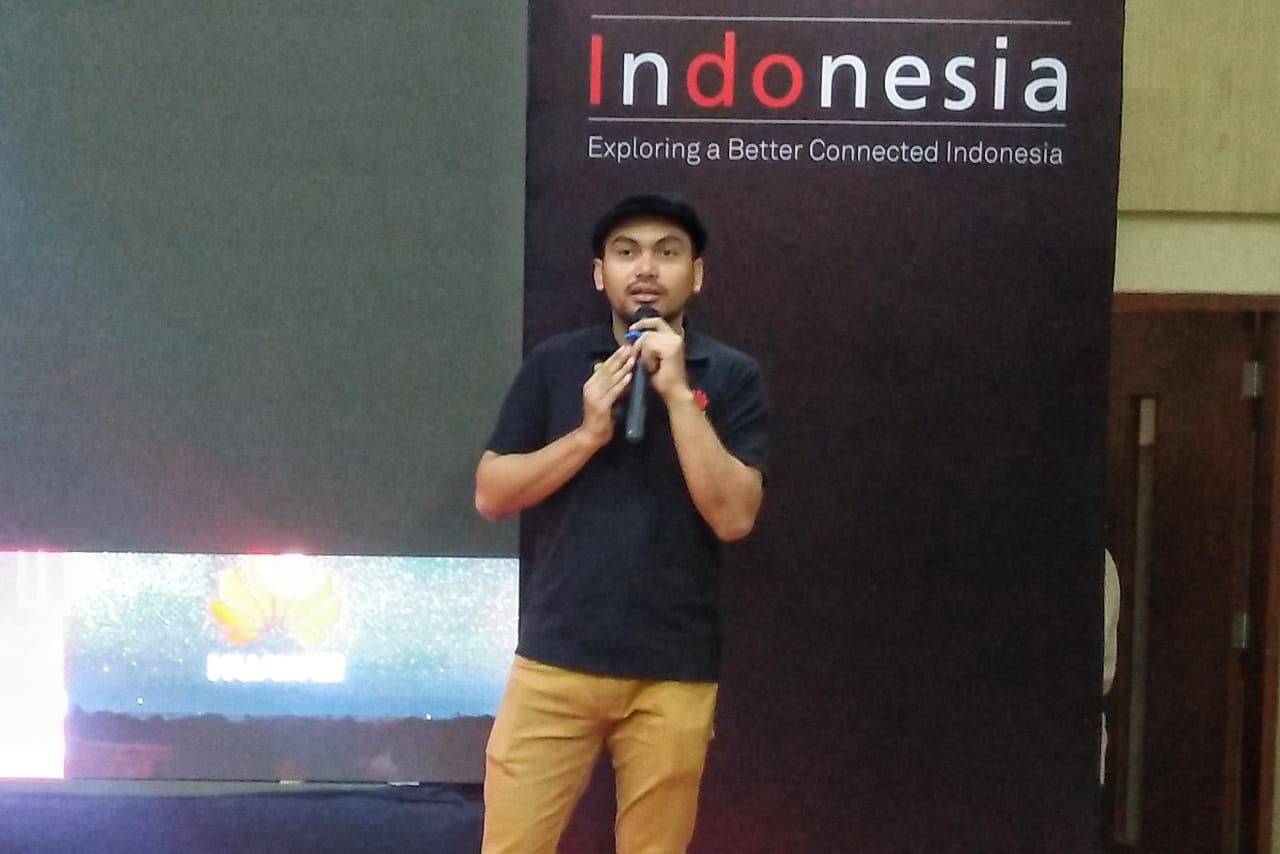 PR Manager of Public Affairs and Communication PT Huawei Tech Invesment, Panji Pratama, saat memberikan materi tentang Seeds for Future