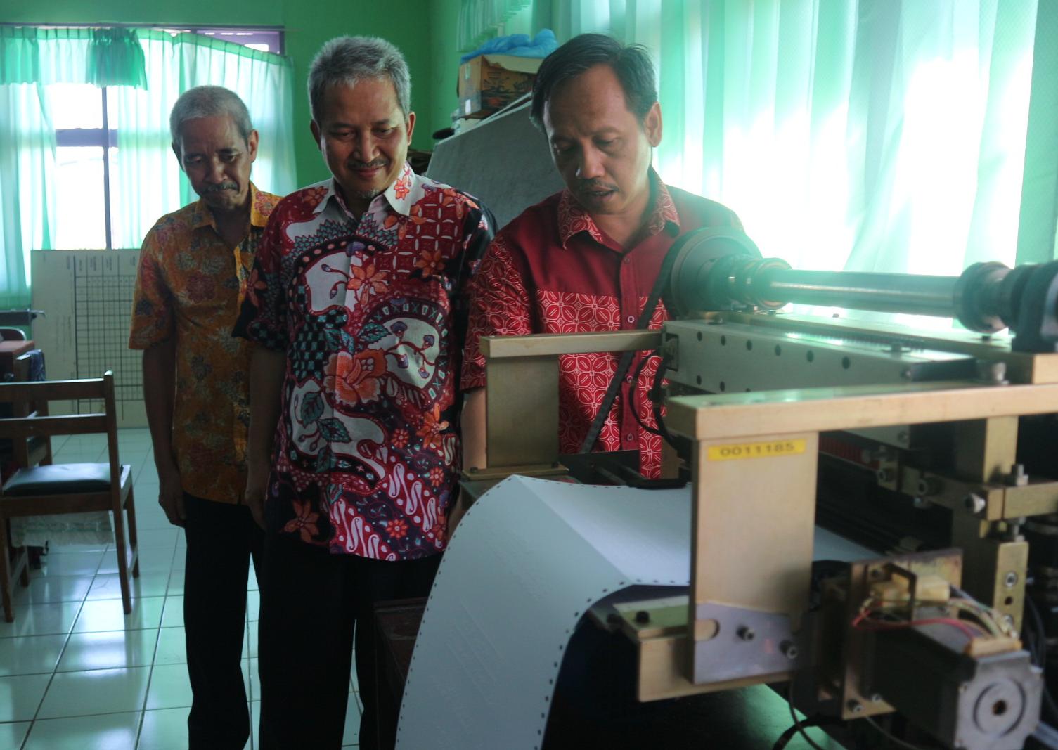 Rektor ITS dan Tim Braille ITS saat melakukan pengujian mesin printer braille di SLB A YPTN Kota Mataram, Nusa Tenggara Barat
