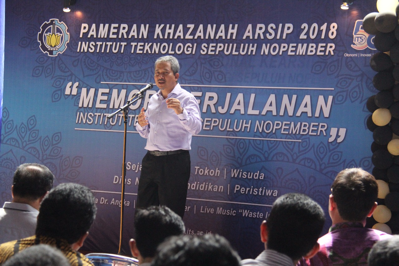 Rektor ITS Prof Joni Hermana memberikan sambutan pembukaan pameran Khazanah Arsip ITS