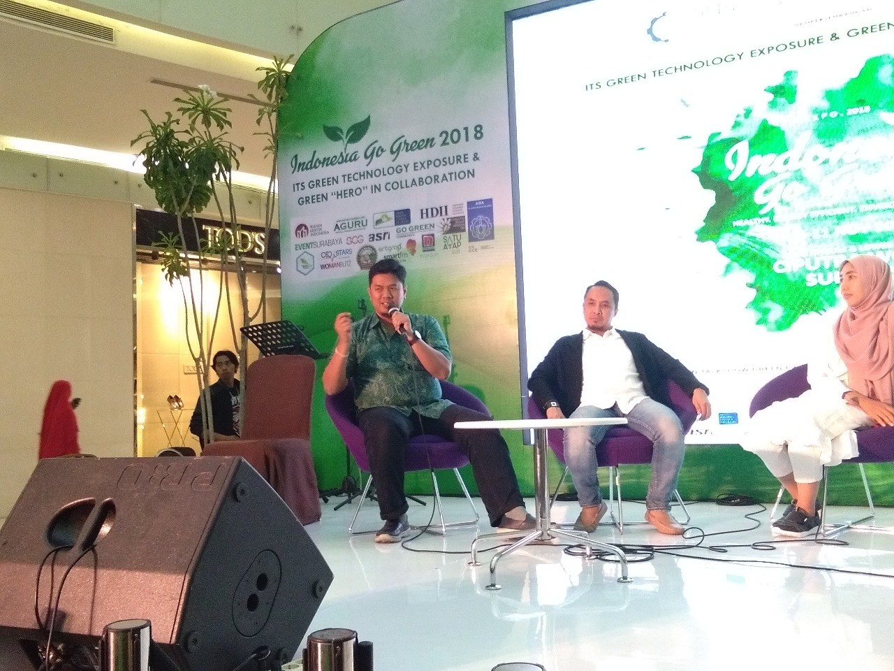 Kampus ITS, ITS News – Isu lingkungan merupakan topik yang selalu hangat untuk dibahas, termasuk diantaranya adalah konsep bangunan ramah lingkungan yang juga disebut Green Building. Dalam kegiatan bertajuk Indonesia Go Green, Institut Teknologi Sepuluh Nopember (ITS) Surabaya bersama Anddys Green Architect menghelat talkshow peduli lingkungan pada Jum’at (9/11) di Atrium Ciputra World Surabaya.