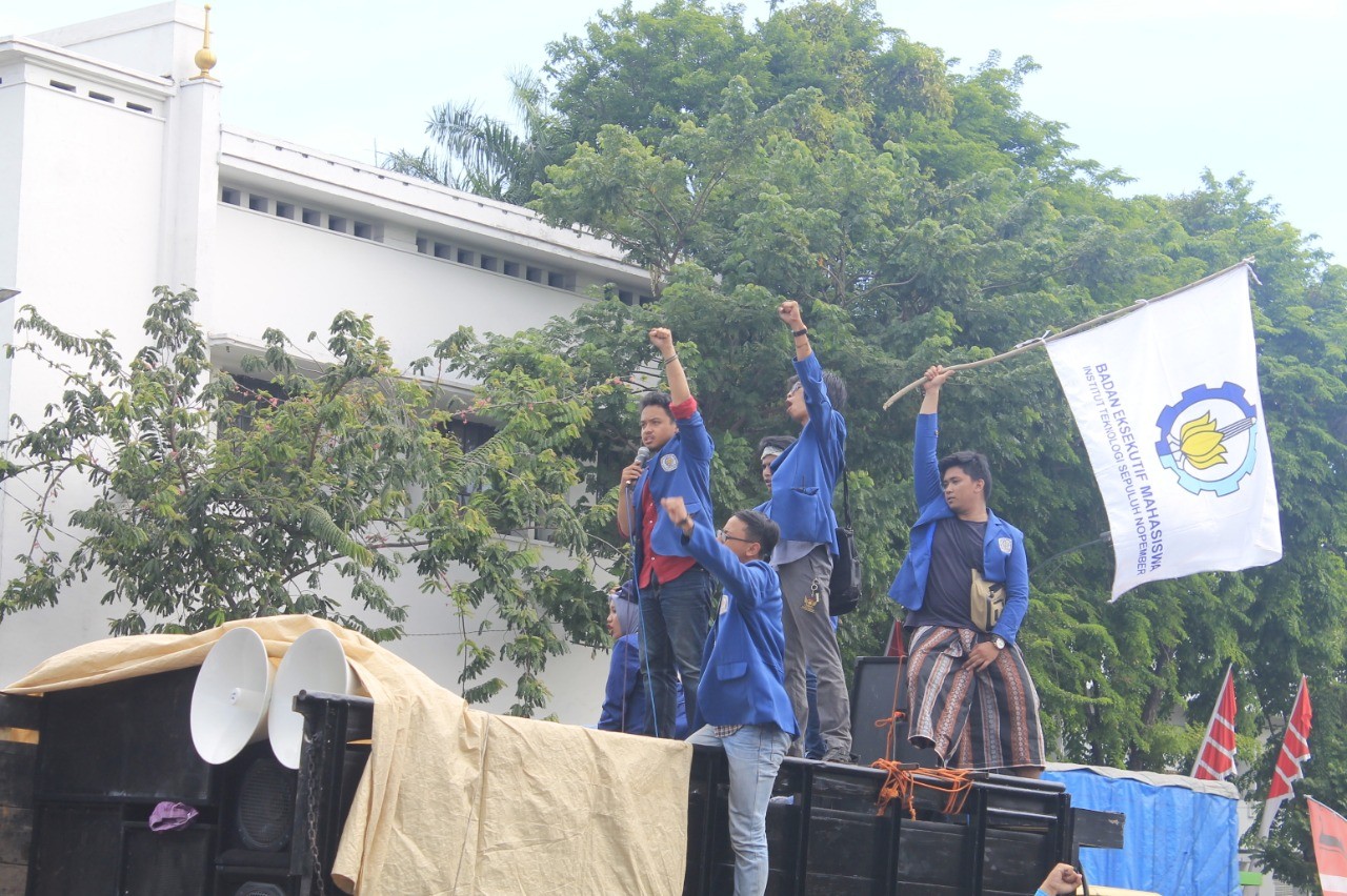 Haekal Akbar, salah satu orator ASN menyerukan perjuangan-perjuangan dari para pahlawan tidak boleh sia-sia. “Ketika pahlawan telah berjuang mati-matian untuk bangsa, maka para mahasiswa juga harus bisa memberikan karyanya untuk bangsa Indonesia ini,” ujar presiden Badan Eksekutif Mahasiswa (BEM) ITS dalam orasinya.