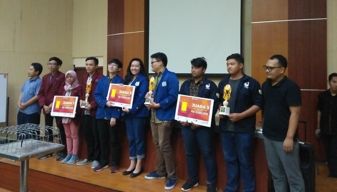 Cornelia Natasha, John Harison, dan Ivander William ITS saat penyerahan hadiah