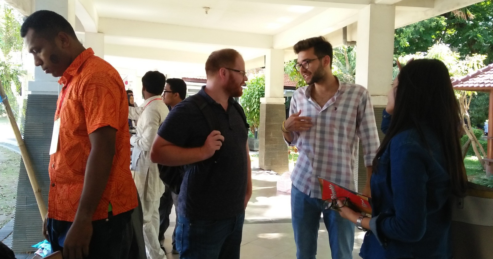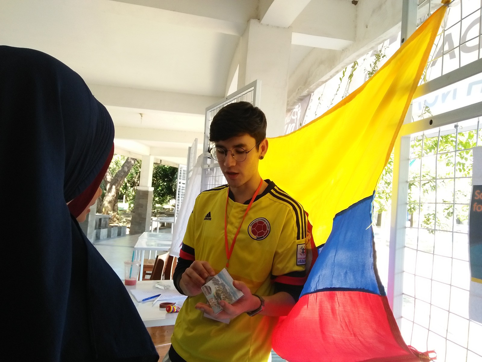 Mahasiswa asing asal Kolombia saat berinteraksi dengan mahasiswa ITS di acara Global Unity Fair 2018