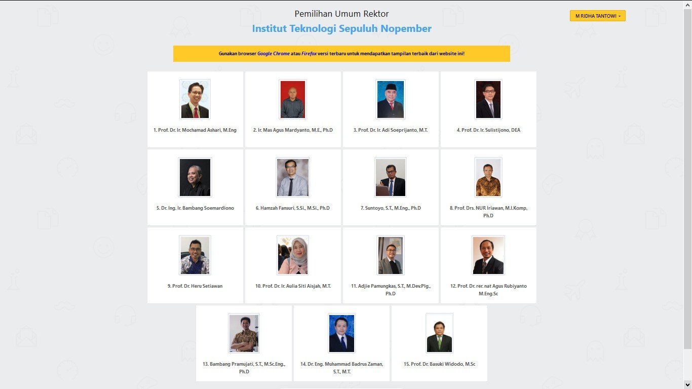 Pada laman tersebut, turut ditampilkan gambar 15 pendaftar bakal calon rektor (bacarek). Tak lupa dicantumkan pula biodata latar belakang pendidikan, jabatan, hingga strategi dan progam kerja. “Dengan begitu pemilih dapat membuat pertimbangan dengan benar, apalagi mereka hanya punya kesempatan satu kali untuk memilih,” tambah dosen Teknik Geofisika itu.