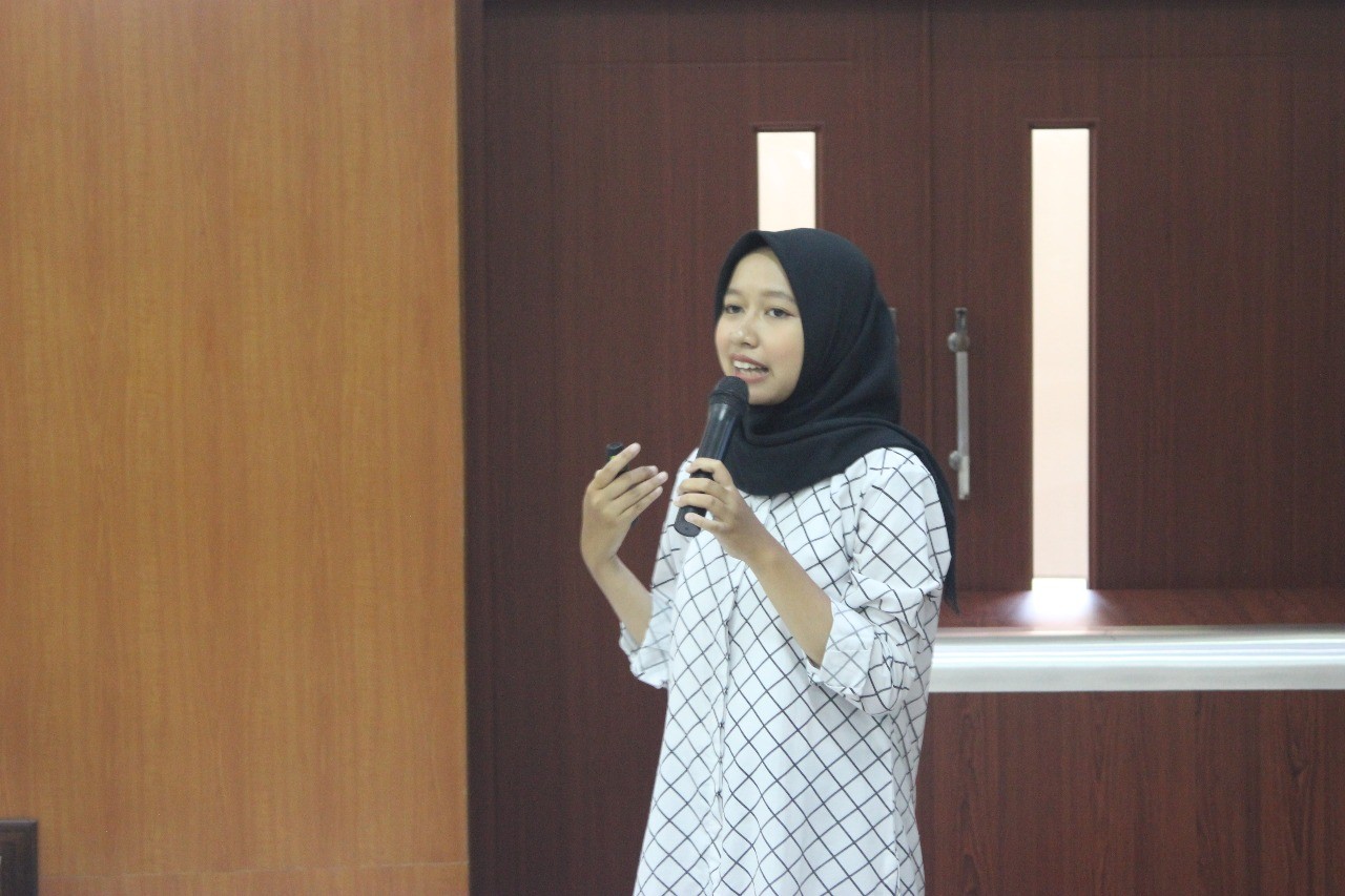 Nuril Hidayati, Volunteer ITS International Office (IO) ketika memberikan materi pada talkshow International Fair