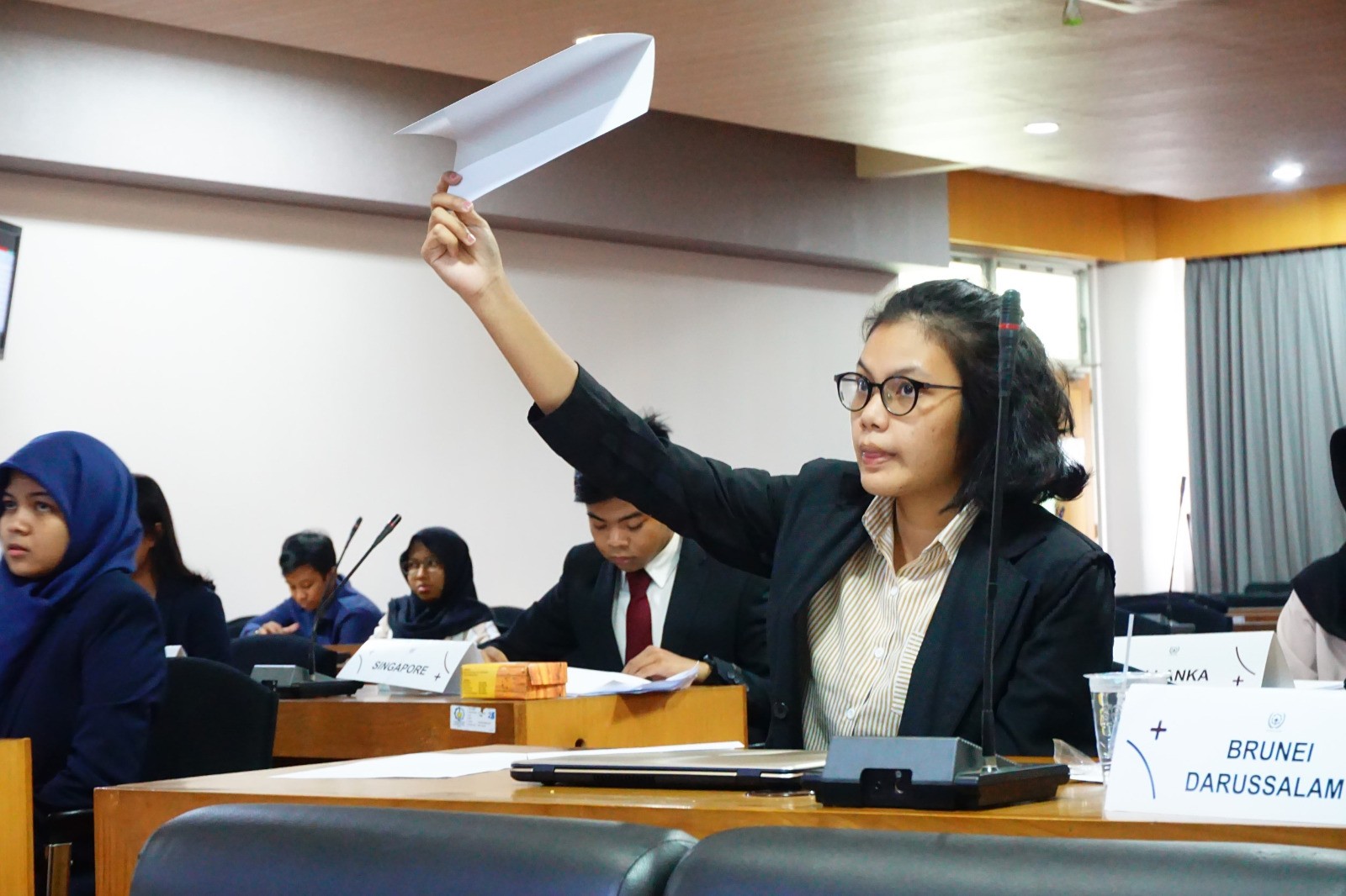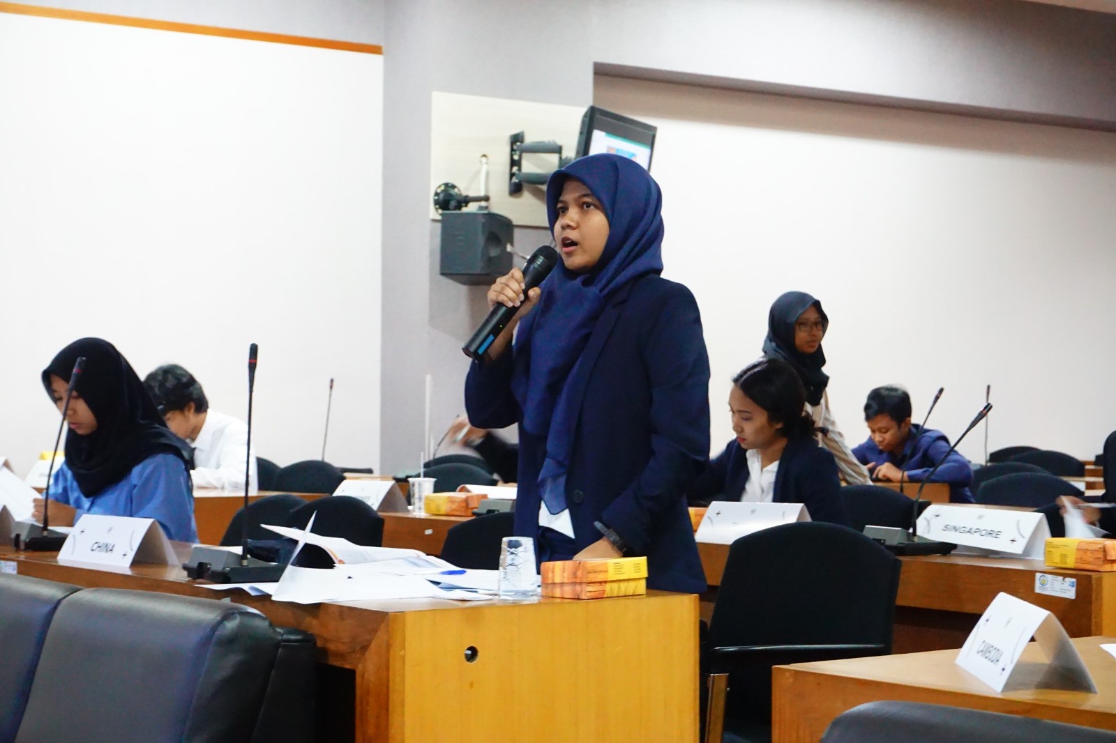 Salah satu peserta ITS MUN General Assembly saat sedang meminta kesempatan berbicara