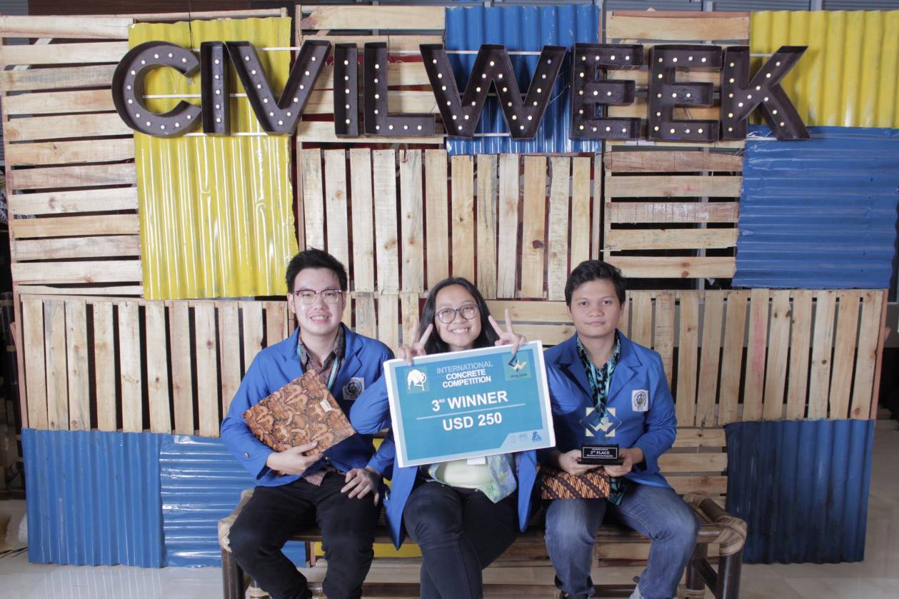 Dari kiri Agus Bastian, Cita Nanda Kusuma Negari, dan David Gideon berhasil menyabet juara ketiga pada International Concrete Competition (ICC) 2018