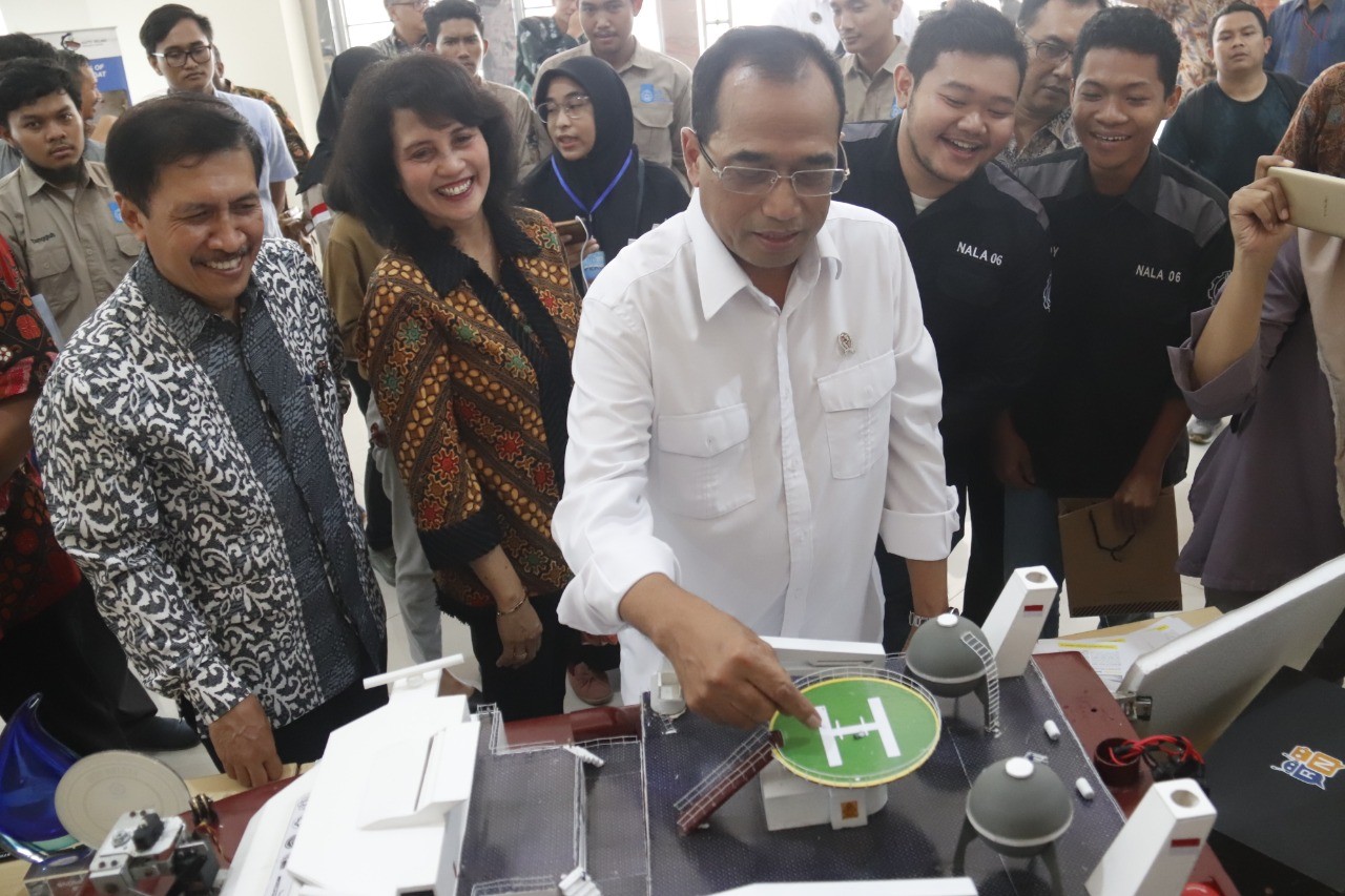 Menhub Budi Karya Sumadi (kemeja putih) meninjau kapal cepat tak berawak Nala Evo Mark III karya Tim Barunastra ITS