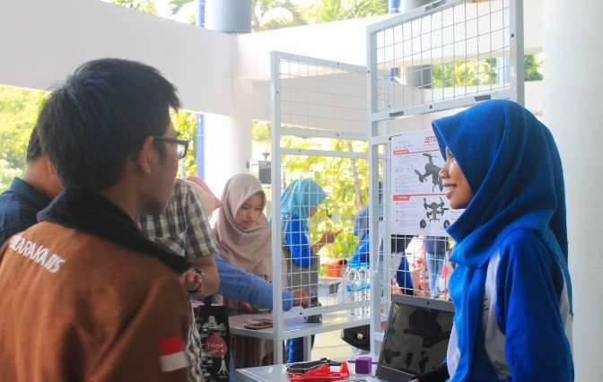 Salah satu peserta FIRE ITS menjelaskan karyanya kepada pengunjung