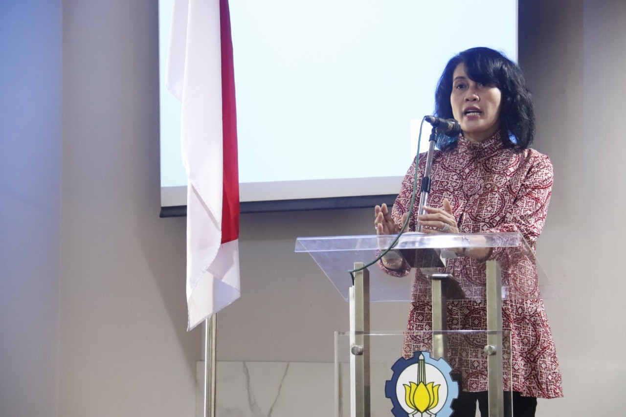 Kepala UPPH ITS, Dr Dra Melania Suweni M MT ketika memberikan sambutan dalam Workshop Fotografi