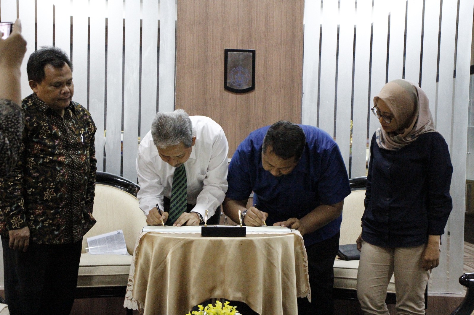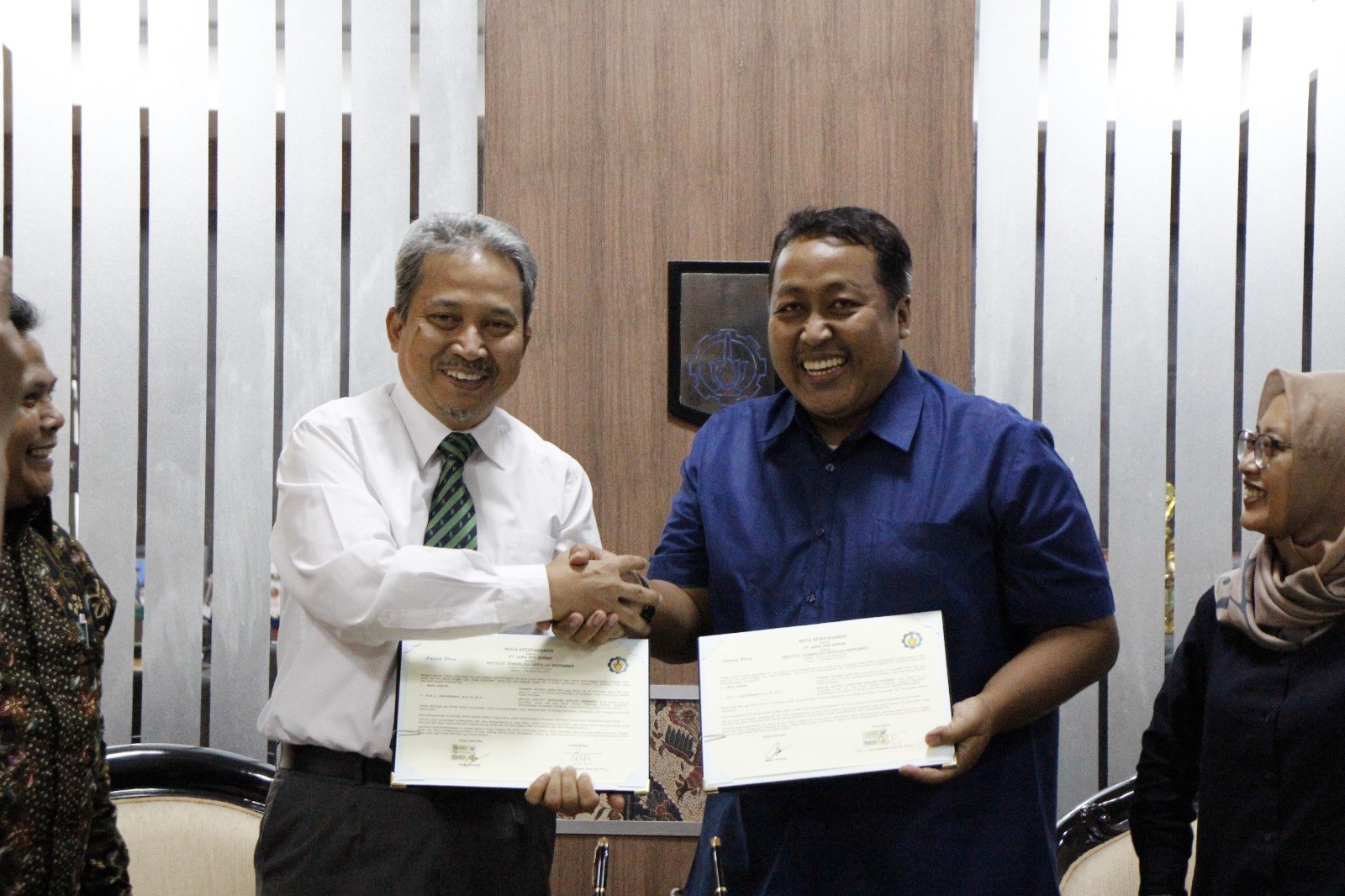 ITS bersama Jawa Pos berfoto bersama setelah menandatangani MoU di Ruang Rektor, Gedung Rektorat ITS