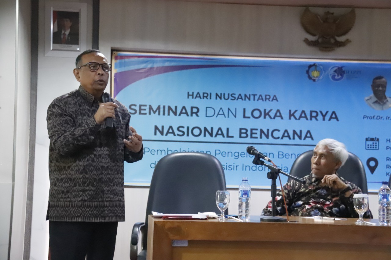 Kampus ITS, ITS News – Dengan wilayah laut yang sangat luas, Indonesia harus waspada dengan potensi meningkatnya risiko bencana bagi masyarakat yang tinggal di kawasan pesisir. Berlatar hal tersebut, Pusat Studi Kebumian, Bencana, dan Perubahan Iklim (PSKBPI) Institut Teknologi Sepuluh Nopember (ITS) Surabaya bekerjasama dengan Himpunan Ahli Pengelolaan Pesisir Indonesia (HAPPI) menyelenggarakan Seminar dan Loka Karya (Semiloka) Nasional Bencana, Selasa (11/12).