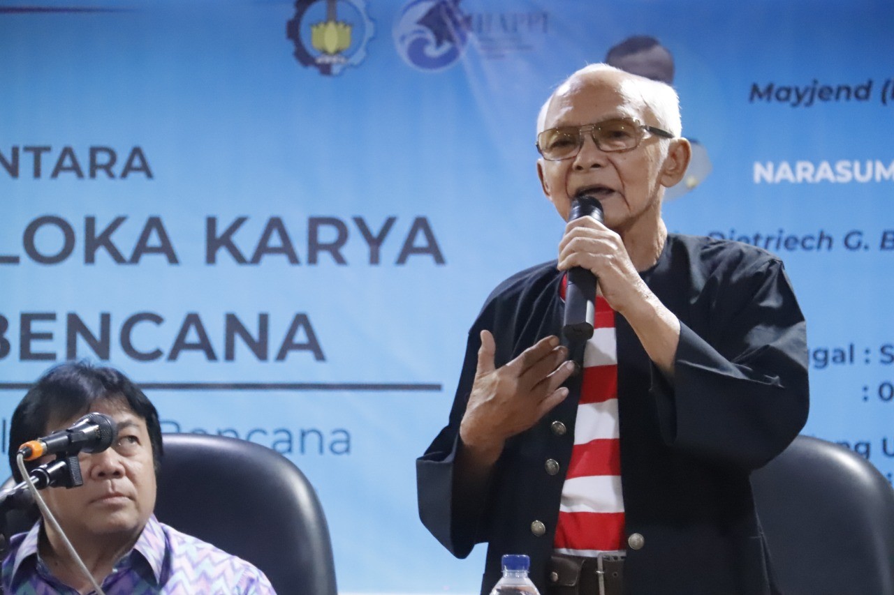 Acara yang dihelat di Ruang Sidang Utama Rektorat ITS ini menghadirkan dua narasumber utama, yakni Prof Syamsul Maarif yang merupakan mantan kepala Badan Nasional Penanggulangan Bencana (BNPB) sekaligus salah seorang yang mendirikan BNPB dan Prof Dr Ir Dietriech G. Bengen DEA, seorang ahli pengelolaan pesisir yang berasal dari Institut Pertanian Bogor (IPB). “Kami merasa sangat beruntung dapat menghadirkan kedua narasumber yang telah bertahun-tahun menggeluti bidangnya ini,” ujar pria asal Lombok ini sumringah.