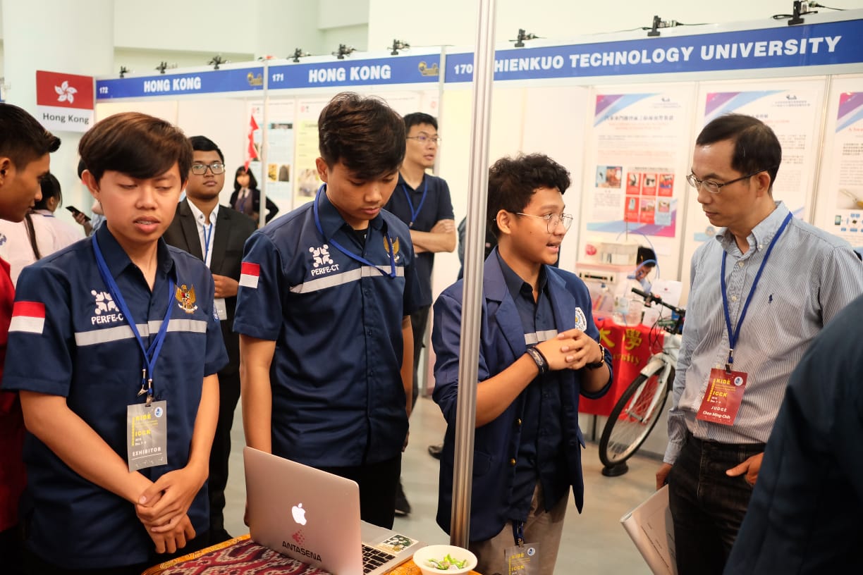 Tim PERFE-CT mempresentasikan karyanya kepada salah satu juri dalam KIDE 2018