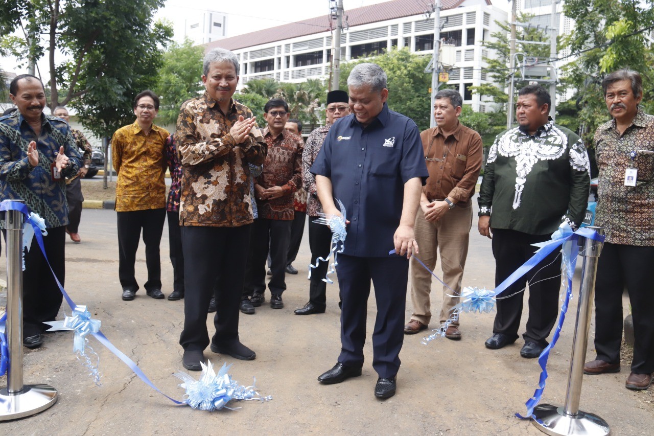 Dr Ir Patdono Suwignjo ditemani Rektor ITS Prof Joni Hermana saat pengguntingan pita peresmian fasilitas STP dan Inkubator ITS