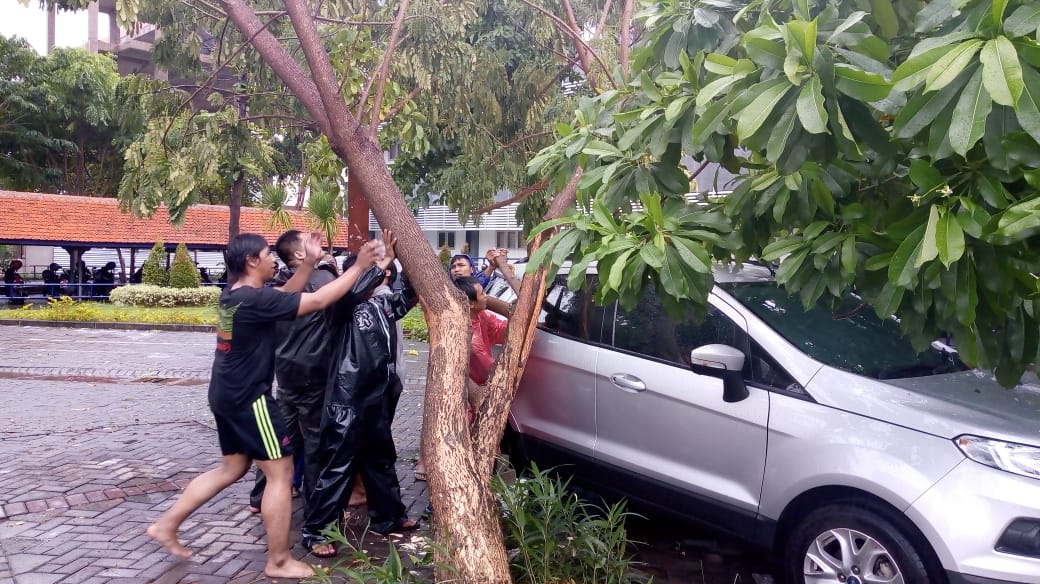 Ilustrasi pohon tumbang yang terjadi di Surabaya akibat tingginya intensitas hujan dan angin kencang.
