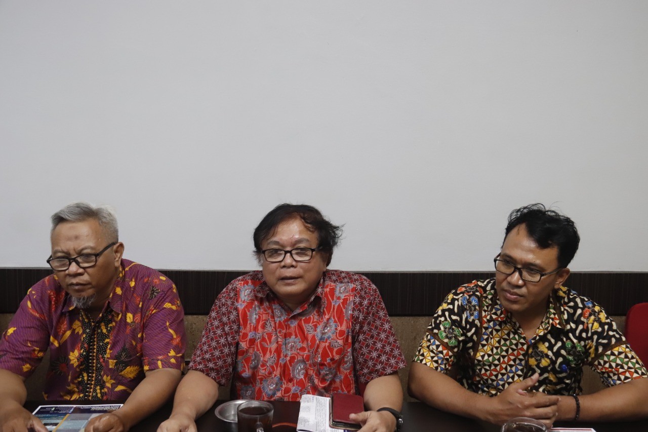 (kiri ke kanan) Dr Arfan Fahmi, Prof Udisubakti dan Dr M Nurif saat menjelaskan prospek ke depan Prodi S1 Studi Pembangunan di ITS