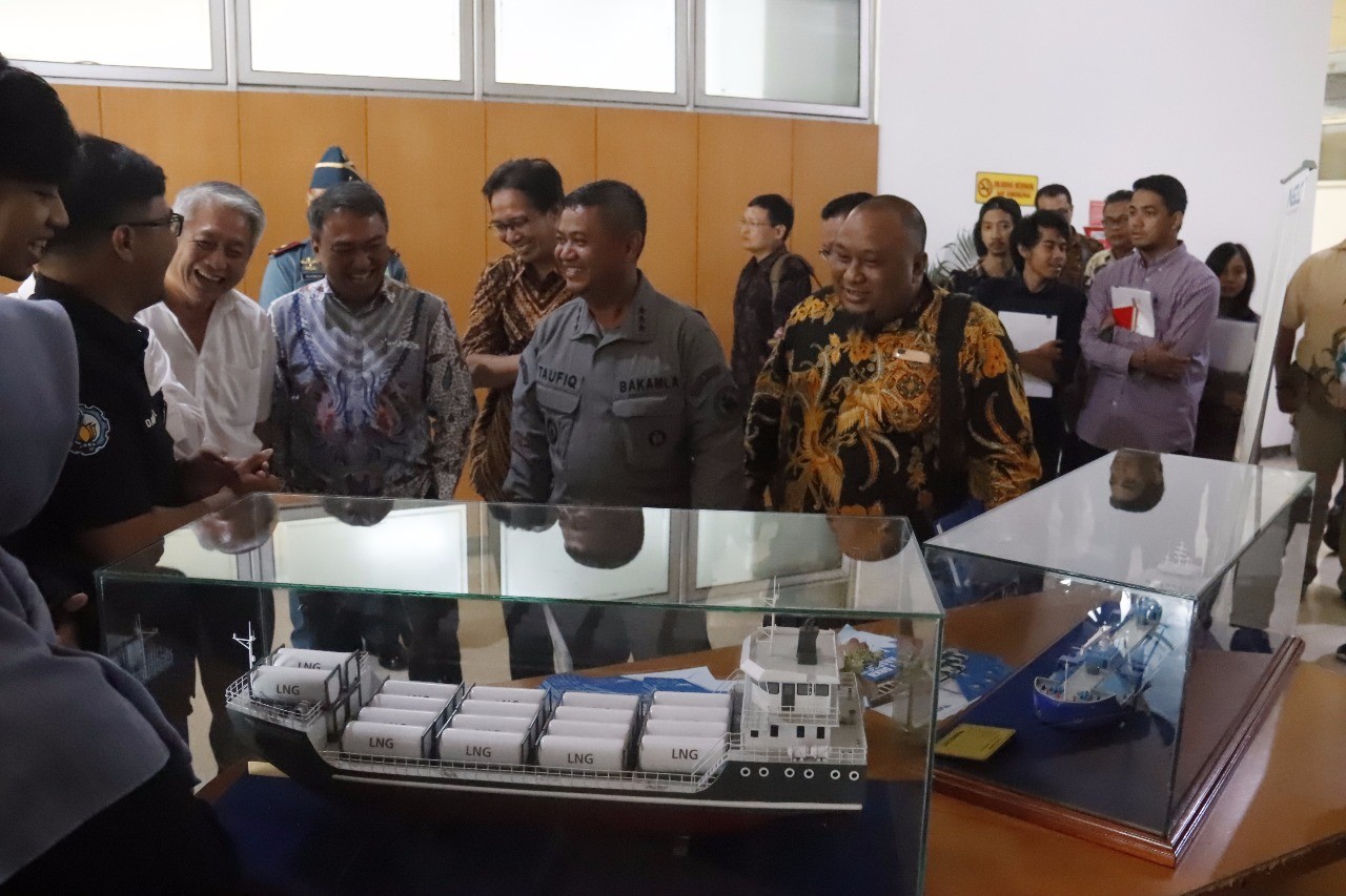 Laksamana Madya (Laksdya) Achmad Taufiqoerrachman (tengah) meninjau sejumlah karya inovatif ITS di bidang maritim