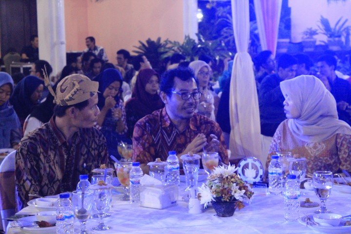 Dari kiri, Kadep Teknik Kimia Juwari ST MEng, Wakil Rektor I Prof DR Ir Heru Setyawan MEng, dan perwakilan Walikota Iswati SSi tengah asyik berbincang sembari menyantap hidangan di Rumah Dinas Walikota