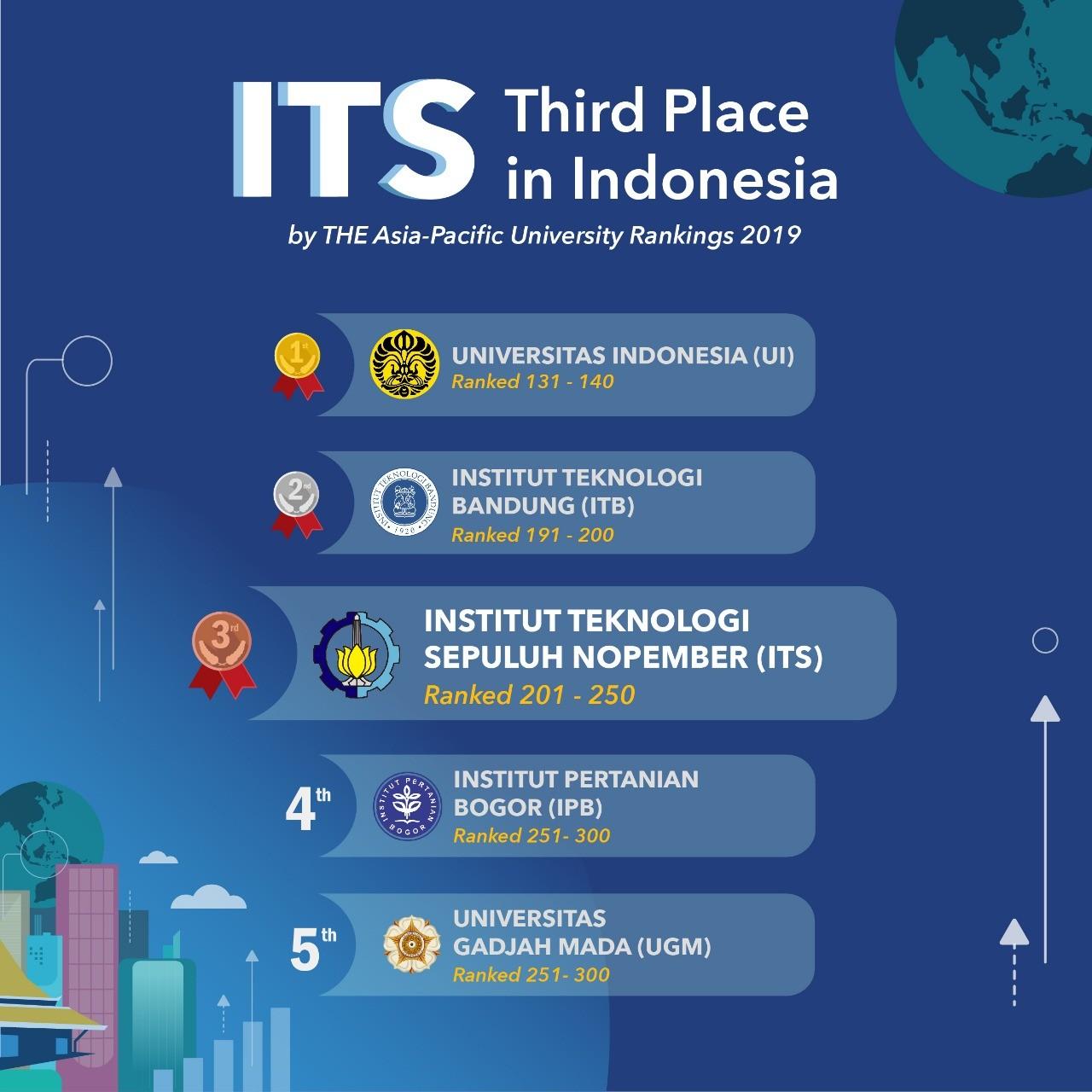 ITS berada dalam jajaran perguruan tinggi terbaik di Indonesia yang masuk dalam pemeringkatan THE Asia Pasific 2019.