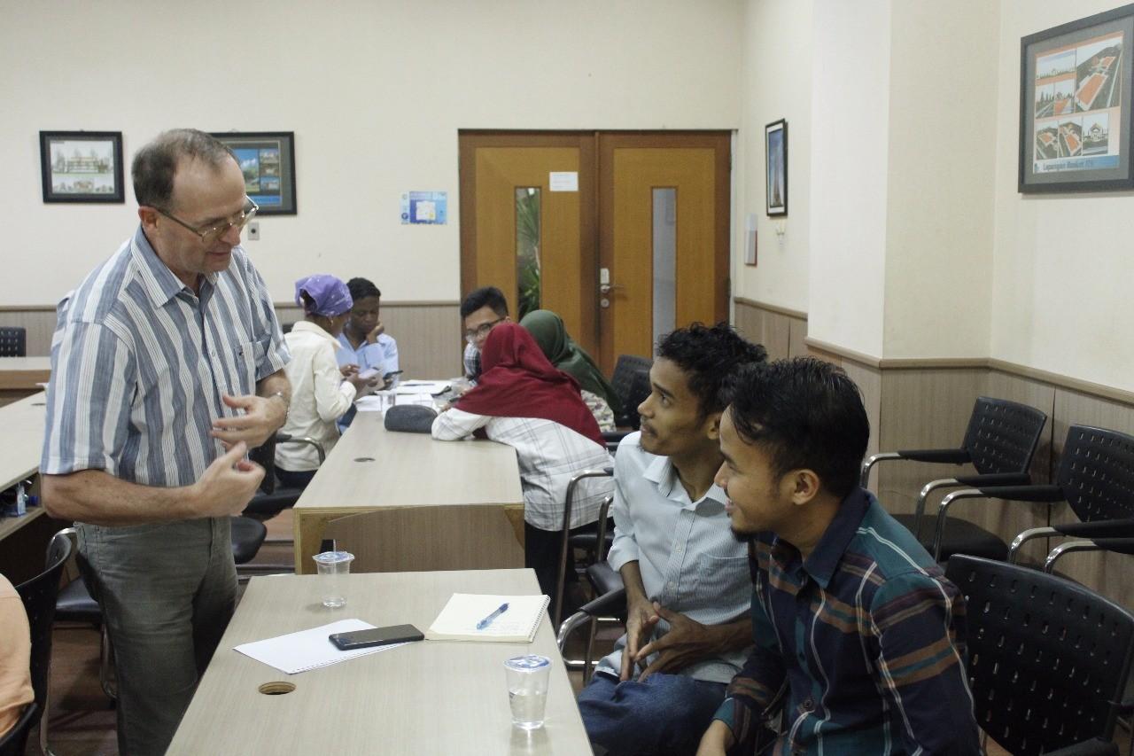 Dr Roman Poraza memberikan penjelasan mengenai tips presentasi ilmiah kepada kepada mahasiswa ITS