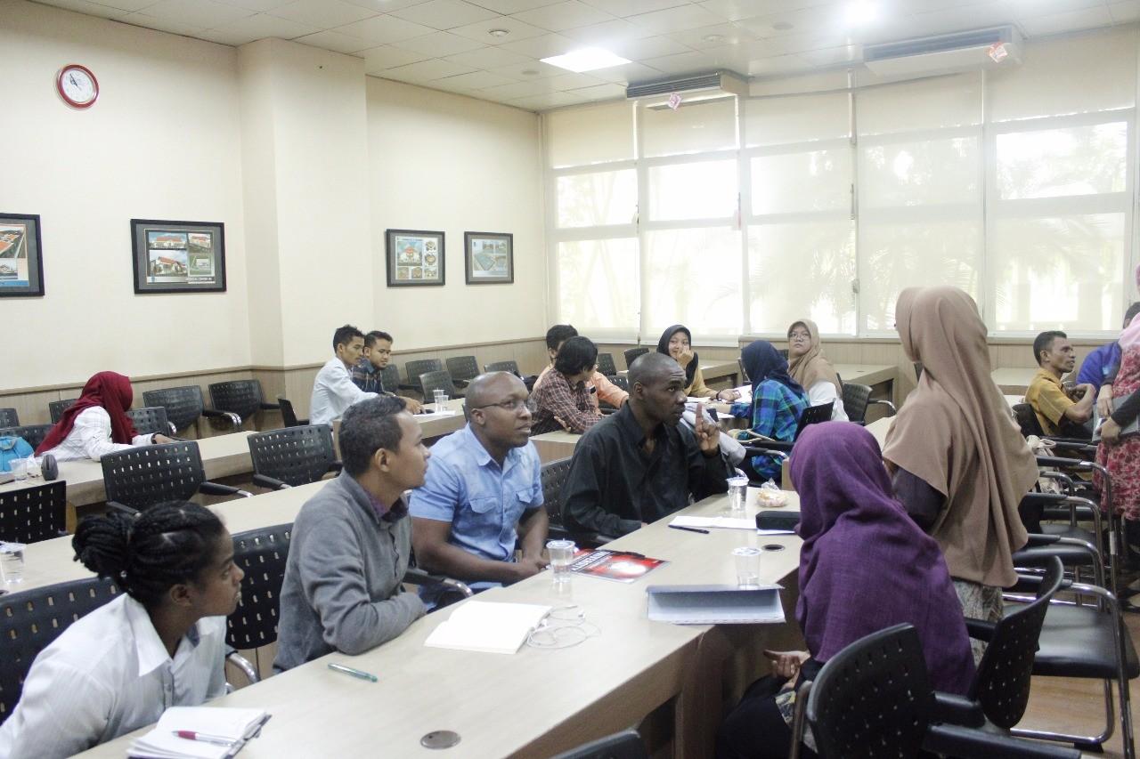 Suasana diskusi sekaligus simulasi dalam acara R2SEP oleh Direktorat Hubungan Internasional ITS yang mendatangkan profesor asal Polandia yakni Dr Roman Podraza