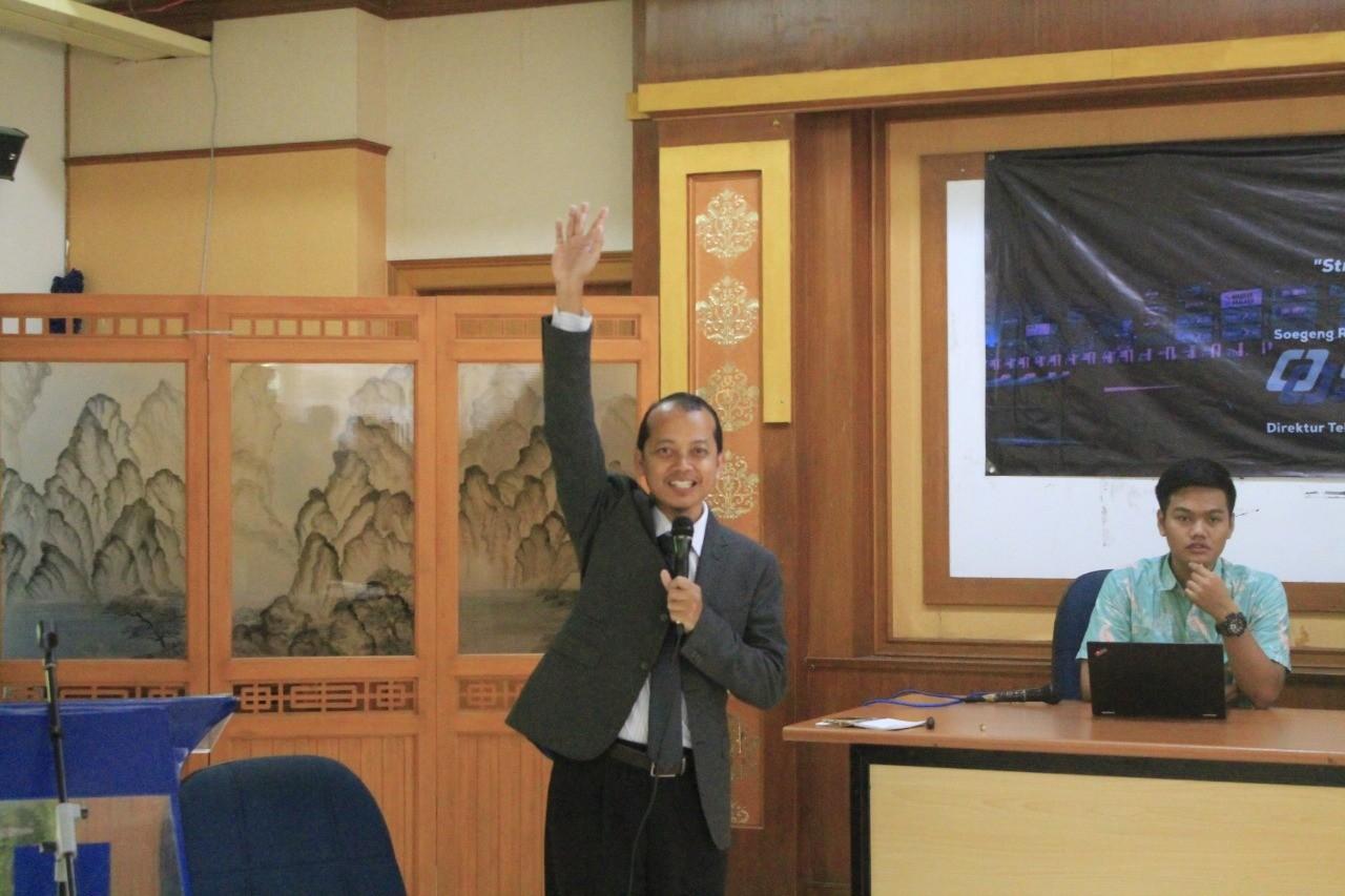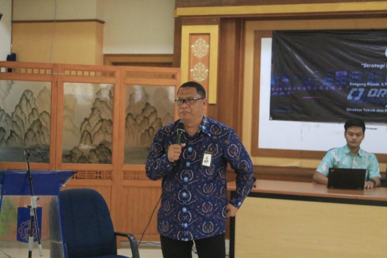 Direktur Teknik dan Pengembangan PT Orela Shipyard, Soegeng Riyadi ST MT MRINA yang sedang menyampaikan materi mengenai peluang dan tantangan industri galangan kapal melalui inovasi teknologi dan pola sinergi