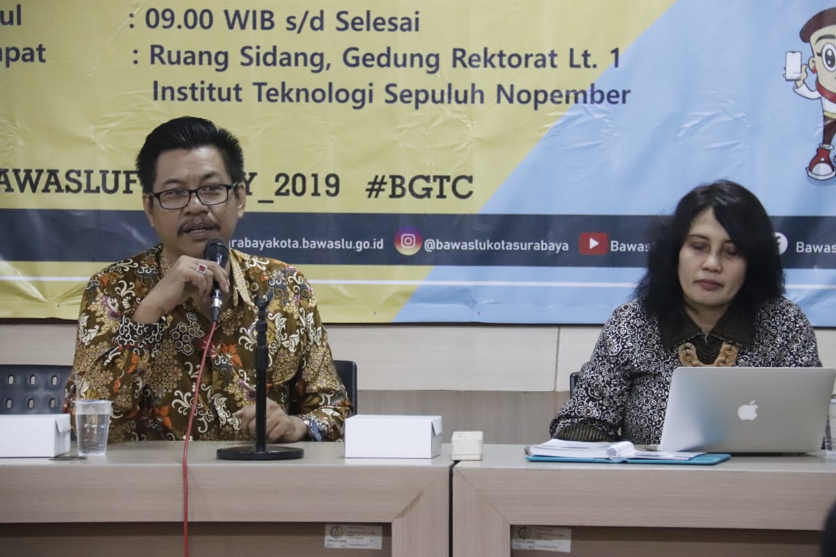 Bawaslu sebagai lembaga penyelenggara pemilu yang bertugas mengawasi penyelenggaraan pemilu di seluruh wilayah Negara Kesatuan Republik Indonesia. Pada kesempatan ini, Bawaslu Kota Surabaya yang diwakili oleh Usman SE didapuk sebagai pemateri di hadapan mahasiswa ITS.