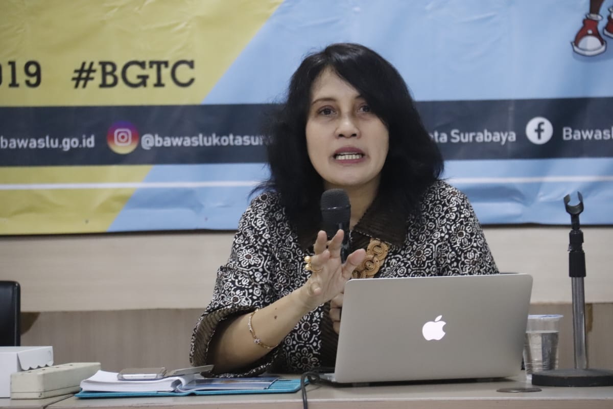 Pemateri kedua adalah Dr Dra Melania Suweni Muntini MSi sebagai Ketua Unit Protokoler Promosi dan Humas (UPPH) ITS yang menjelaskan tentang peran media dalam pemilu 2019