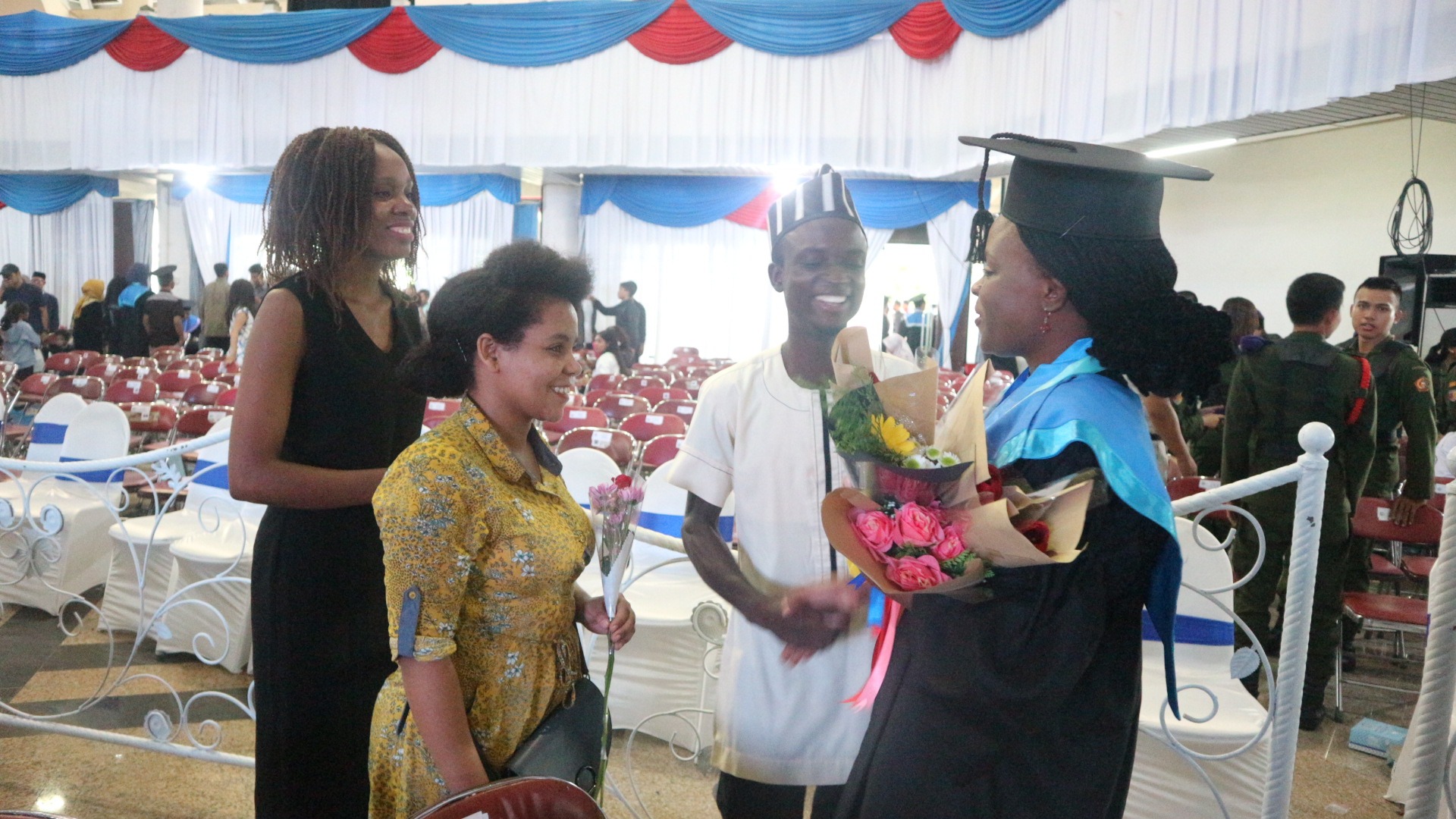Kampus ITS, ITS News – Prosesi wisuda 119 Institut Teknologi Sepuluh Nopember (ITS) Surabaya telah usai. Berbagai hiruk-pikuk yang ada turut mewarnai jalannya wisuda 119. Mulai dari peraih gelar doktor termuda, mahasiswa prestatif, nyanyian penuh kejutan dari Rektor ITS, Prof Ir Joni Hermana MScEs PhD, serta berbagai hal menarik lainnya. Tidak luput dari perhatian, wisuda kali ini juga turut meluluskan beberapa mahasiswa mancanegara. Satu di antaranya ialah mahasiswi asal Zimbabwe.