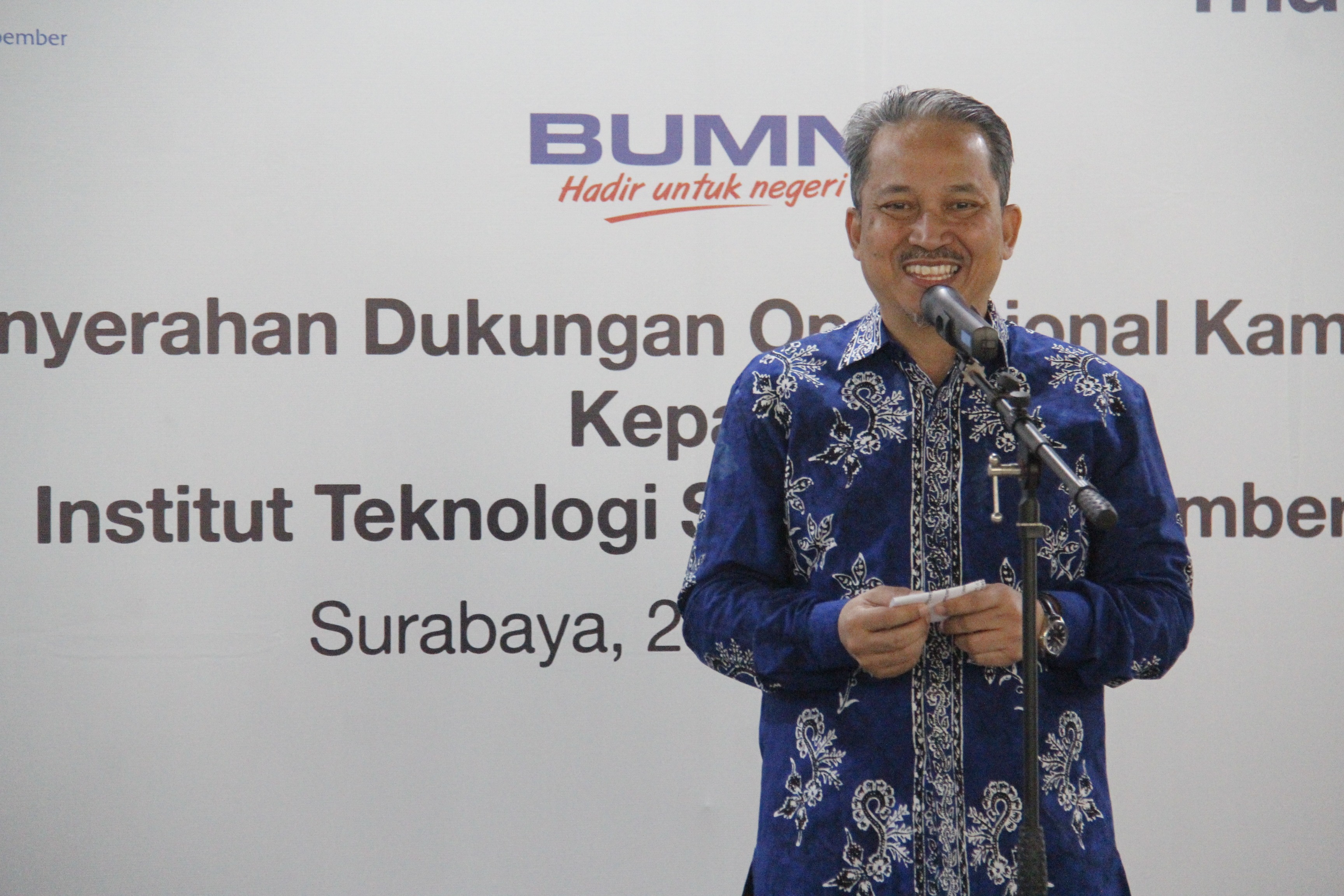 Rektor ITS, Prof Ir Joni Hermana MScES PhD memberikan sambutan dalam Penyerahan Dukungan Operasional Kampus Kepada ITS