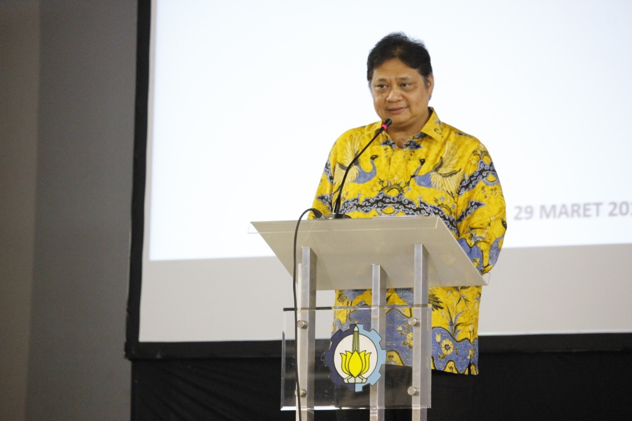 Menteri Perindustrian RI, Ir Airlangga Hartarto MBA MMT dan Rektor ITS Prof Joni Hermana berfoto bersama para peserta usai seminar