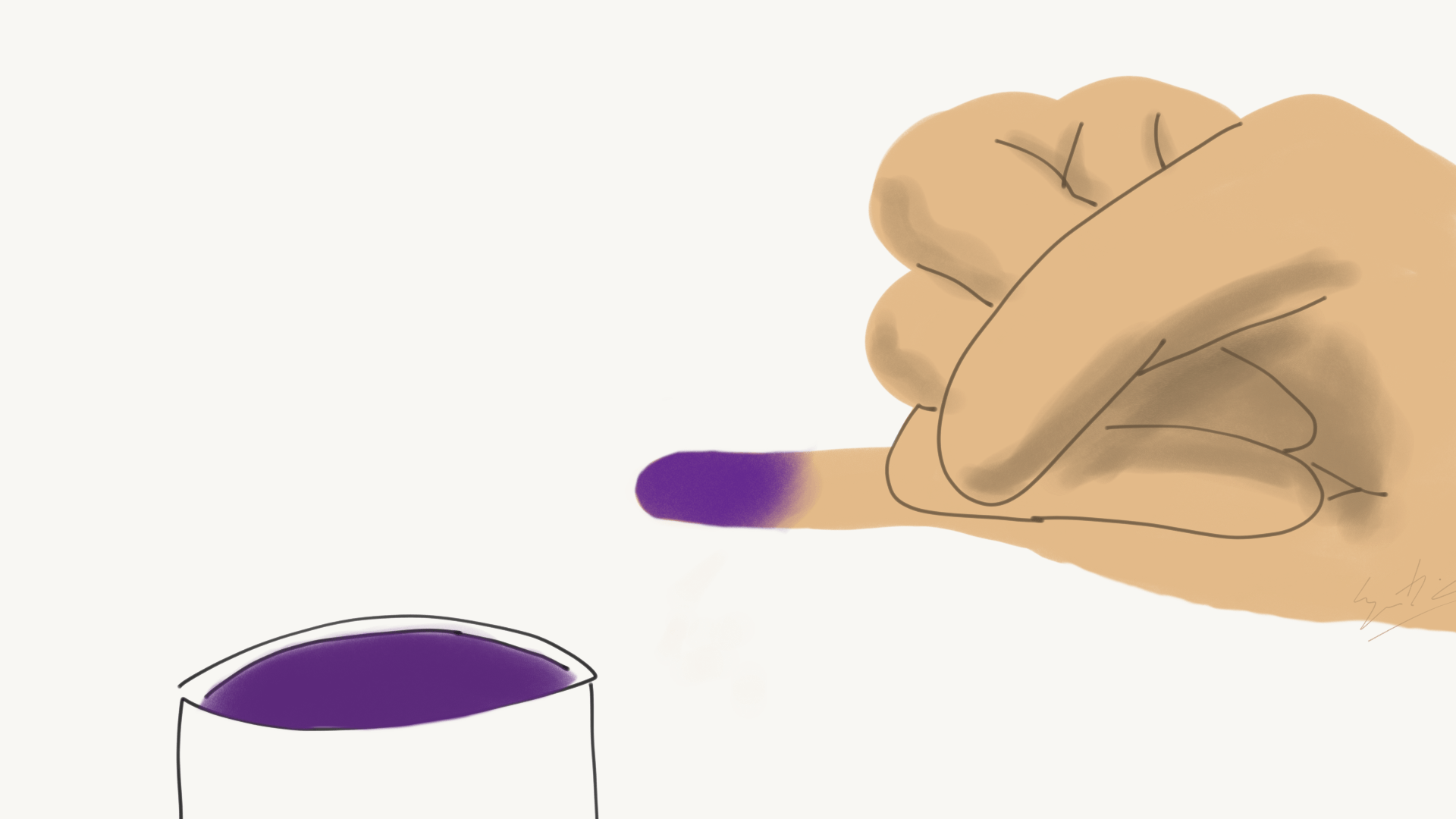 Ilustrasi tinta ungu di jari setelah memilih di pemilihan umum