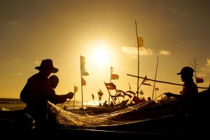 Foto para nelayan tengah merapikan jalanya. Sumber foto : monabay.co.id