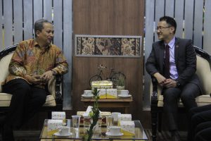 Prof Ir Joni Hermana MSc ES PhD dan Prof Ming K Lim sedang berbincang hangat sebelum penandatanganan MoU