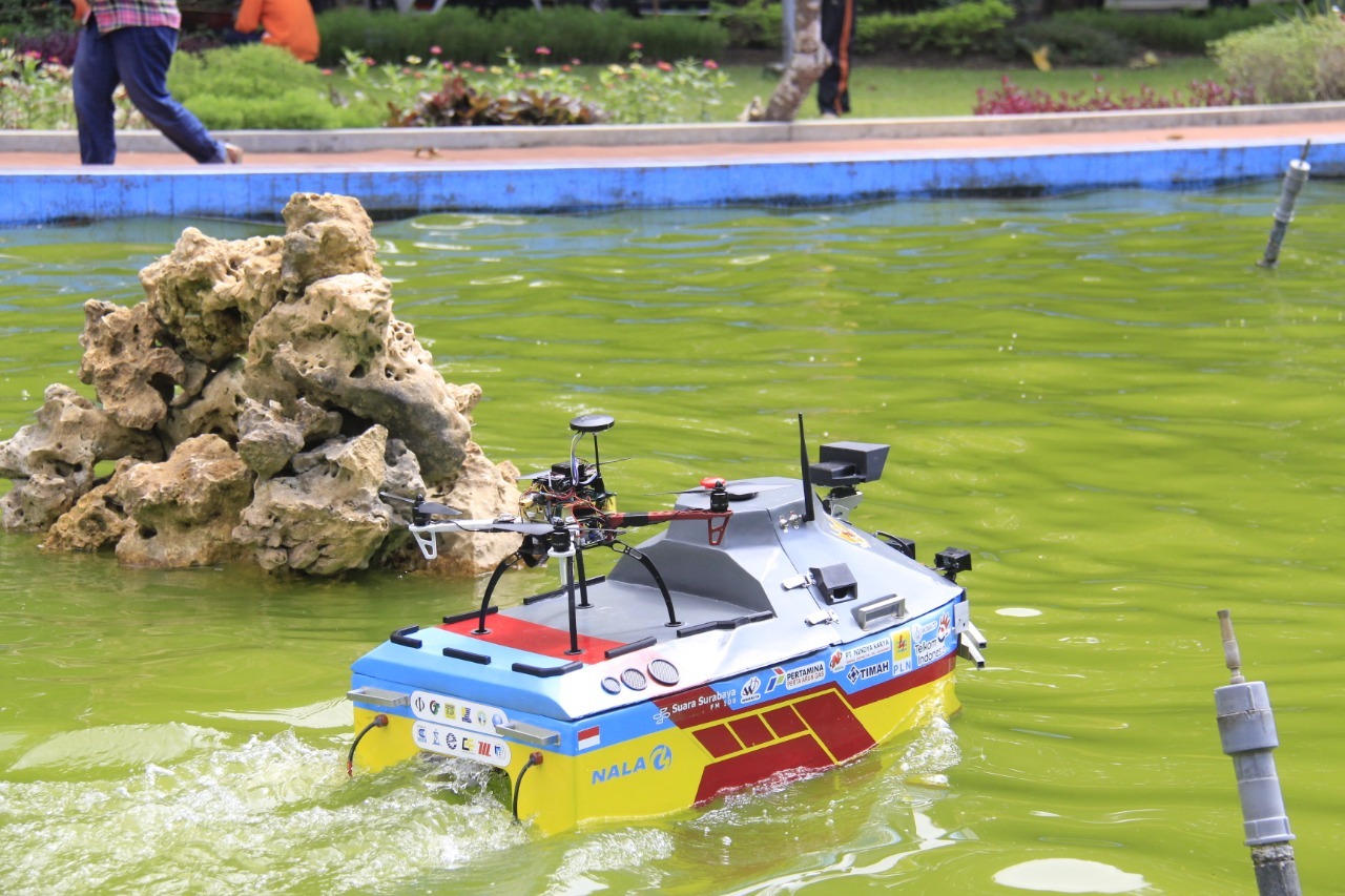 Kapal Tim Barunastra ITS, Nala G.4, saat demo menunjukkan kemampuannya di kolam Rektorat ITS