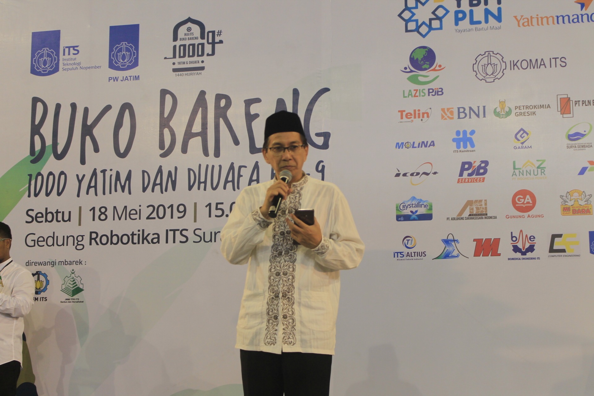Ketua IKA-ITS Pengurus Wilayah (PW) Jatim, Dr Ir Wahid Wahyudi MT menyampaikan, buka bersama kali ini bertepatan dengan bulan Mei, yakni bulan di mana bangsa Indonesia memperingati hari pendidikan nasional (Hardiknas). Oleh karena itu, kegiatan ini hadir dengan membawa semangat pendidikan yang berwujud ajakan kepada anak-anak yatim untuk gemar membaca.