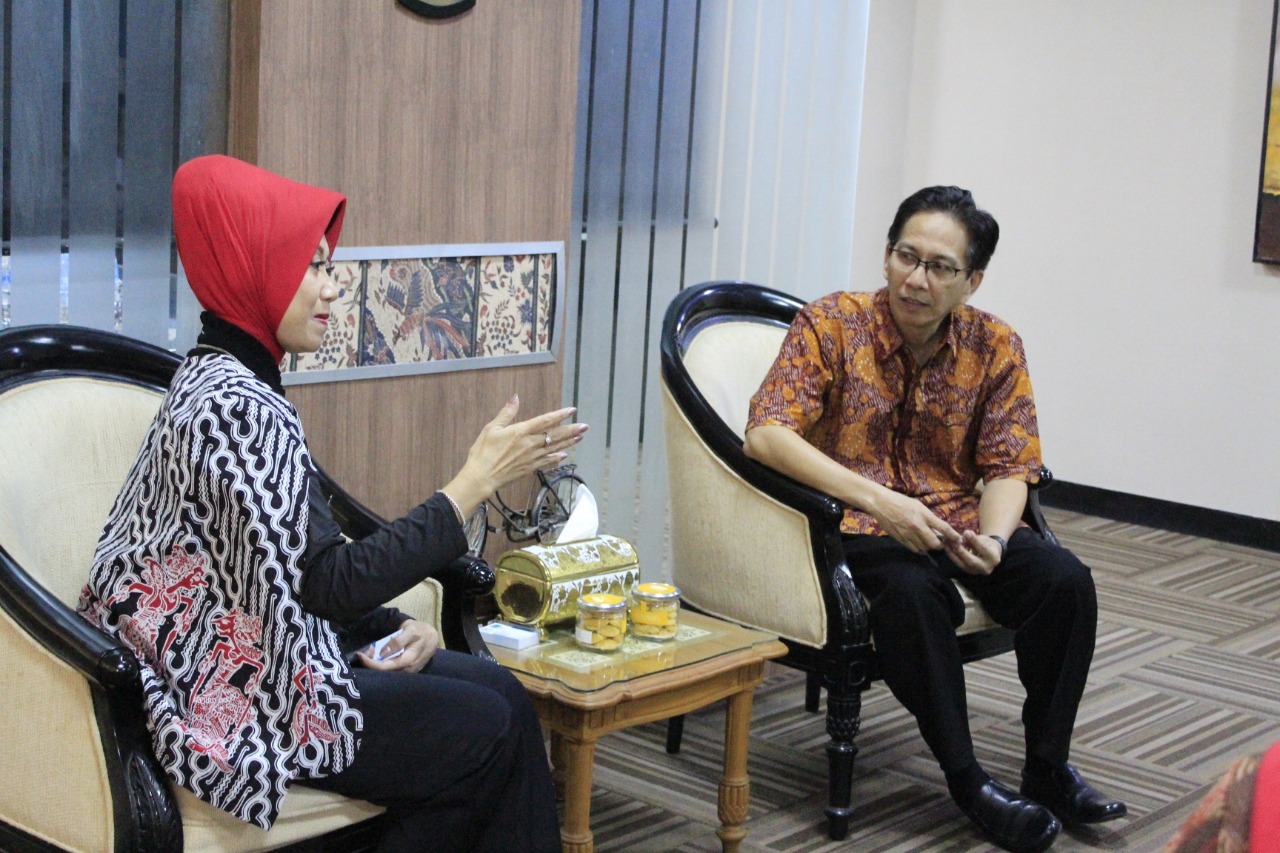 Direktur Jenderal Pengembangan Daerah Tertentu Ir Aisyah Gamawati MM (kiri) saat berdiskusi bersama dengan Rektor ITS Prof Mochamad Ashari (kanan)