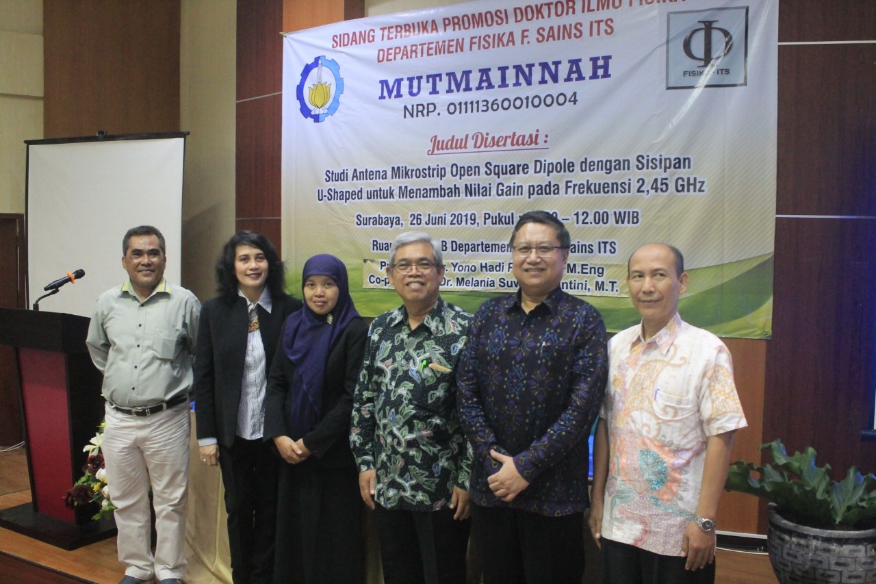 Kampus ITS, ITS News – Tuntutan penggunaan multi frekuensi seiring pesatnya pertumbuhan teknologi komunikasi, berdampak pada pengembangan device pendukung komunikasi seperti antena mikrostrip. Melihat peluang ini, Mutmainnah SSi MSi mahasiswa S3 Departemen Fisika Institut Teknologi Sepuluh Nopember (ITS) Surabaya. Tergerak untuk mengembangkan antena mikrostrip folded dipole dengan sisian U-Shaped, Mutmainnah merealisasikannya dalam sidang terbuka promosi doktor yang dipimpin oleh Prof Dr rer nat Agus Rubiyanto MEng Sc di Gedung Teater B ITS, Rabu (26/7).
