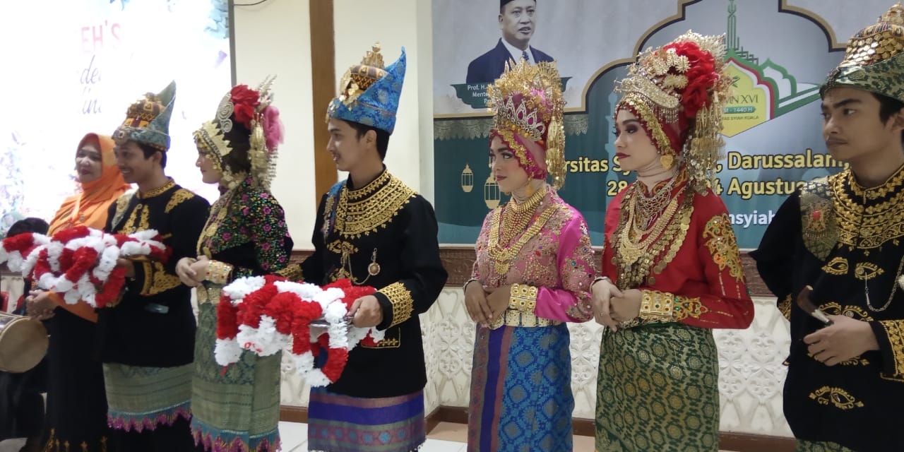 Penyambutan kontingen peserta MTQMN XIV dengan pengalungan kalung bunga dan penampilan Serunee Kale (alat musik tradisional Aceh, red) di bandara Sulthan Iskandar Muda.