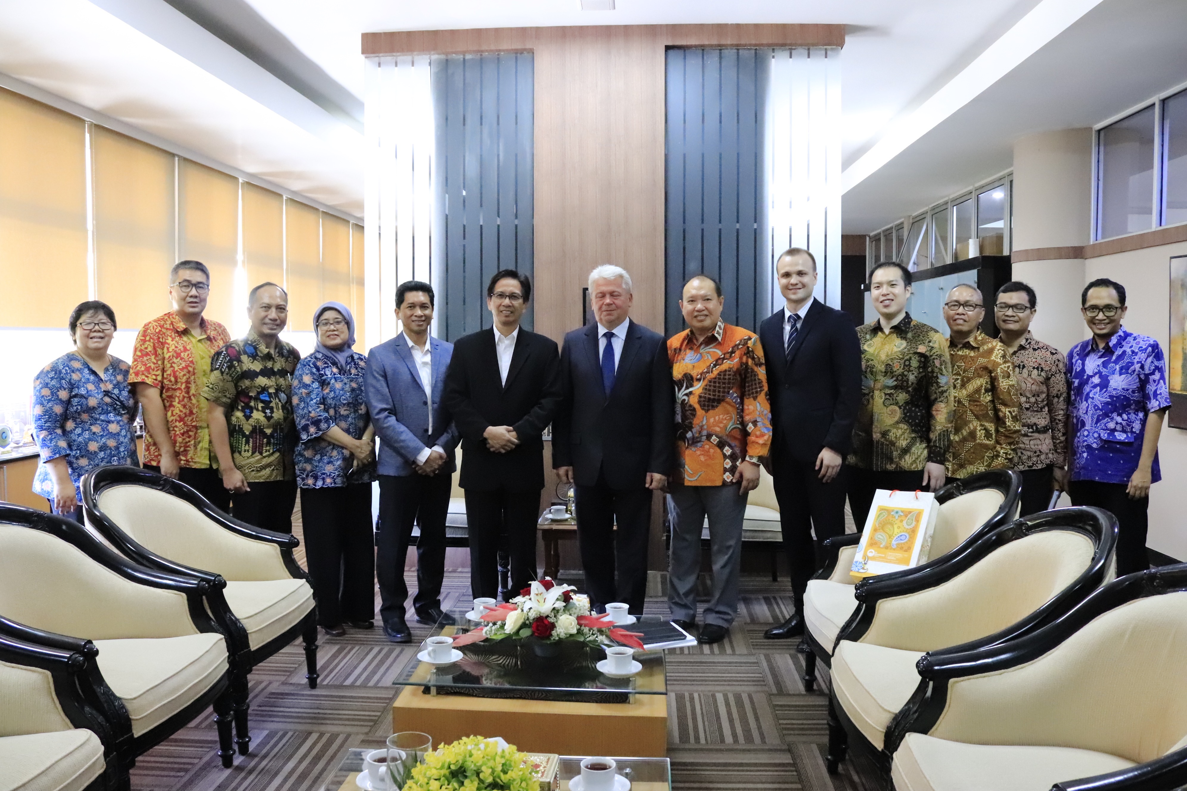 Pertemuan Duta Besar Belarusia untuk Indonesia HE Mr Valery Kolesnik dengan Prof Dr Ir Mochamad Ashari MEng di Rektorat ITS Selasa (13/8).