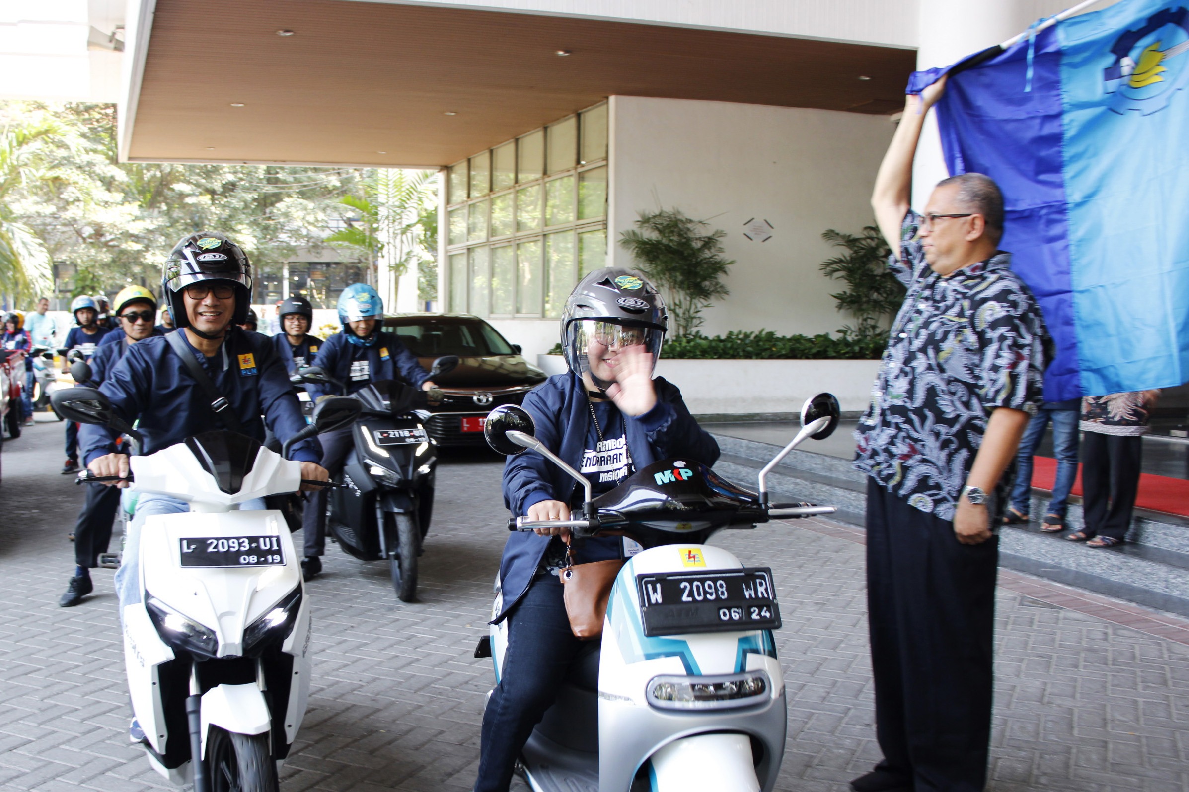 Pelepasan peserta Jambore Kendaraan Listrik Nasional 2019 oleh Wakil Rektor 3 Bidang Sumber Daya Manusia, Organisasi, dan Teknologi dan Sistem Informasi, Dr Eng Ir Ahmad Rusdiansyah MEng