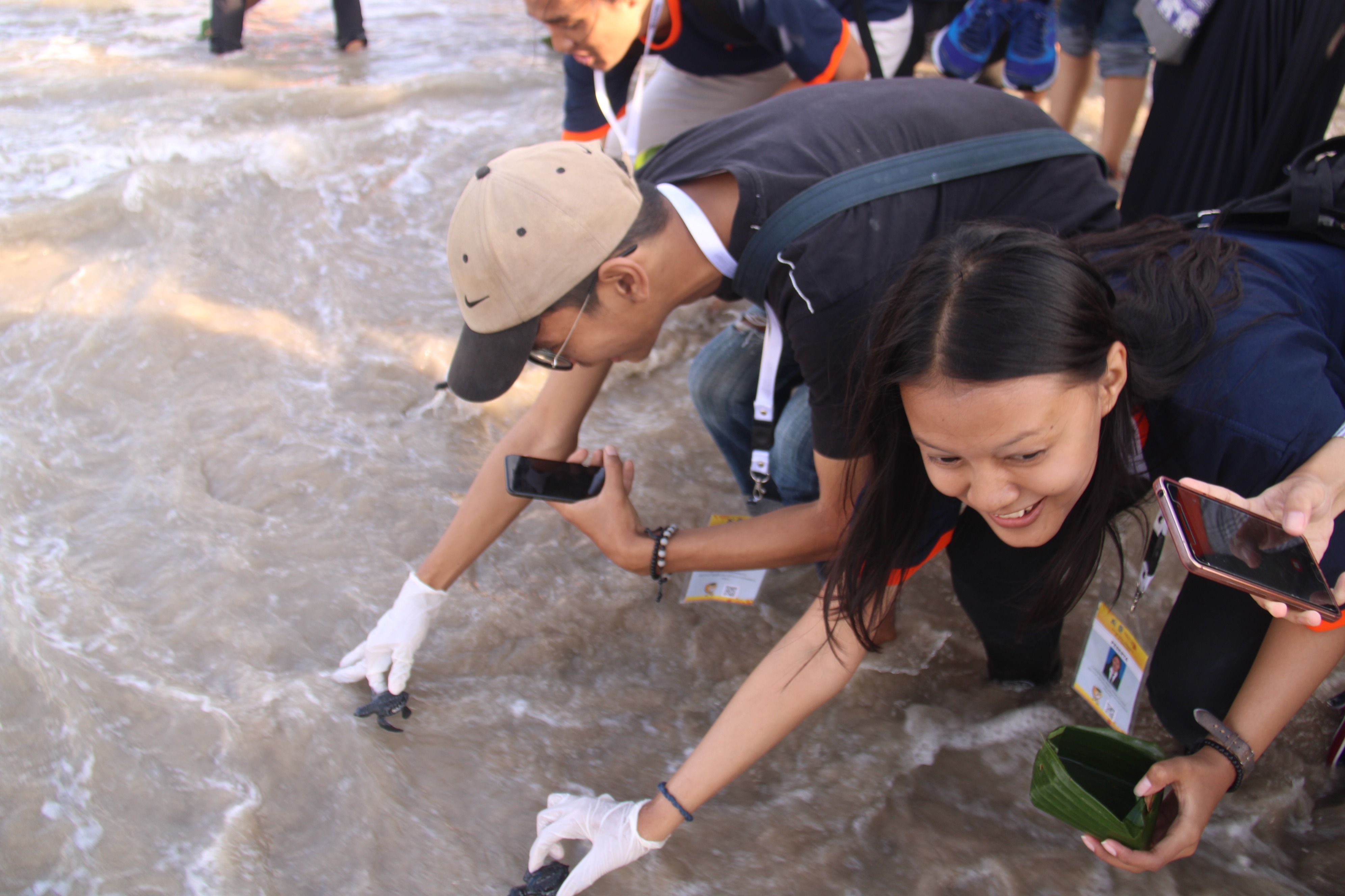 Perwakilan Kontingen ITS ketika melepaskan tukik ke laut