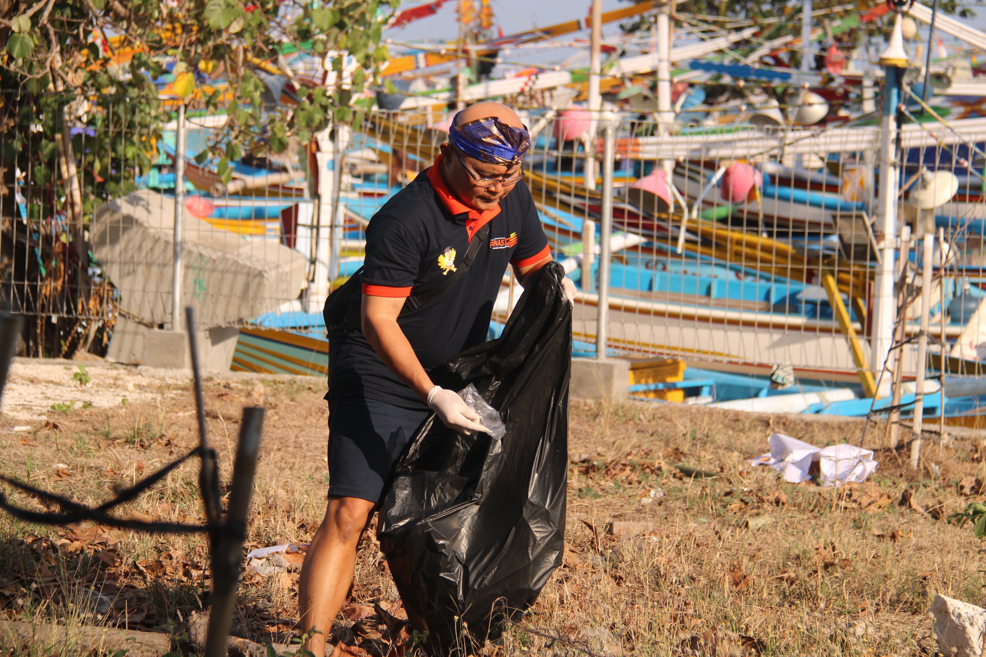 Wakil Rektor II Bidang Perencanaan, Keuangan, dan Sarana Prasarana ITS, Ir Mas Agus Mardyanto ME PhD ikut serta dalam membersihkan sampak plastik di pesisir Pantai Kelan