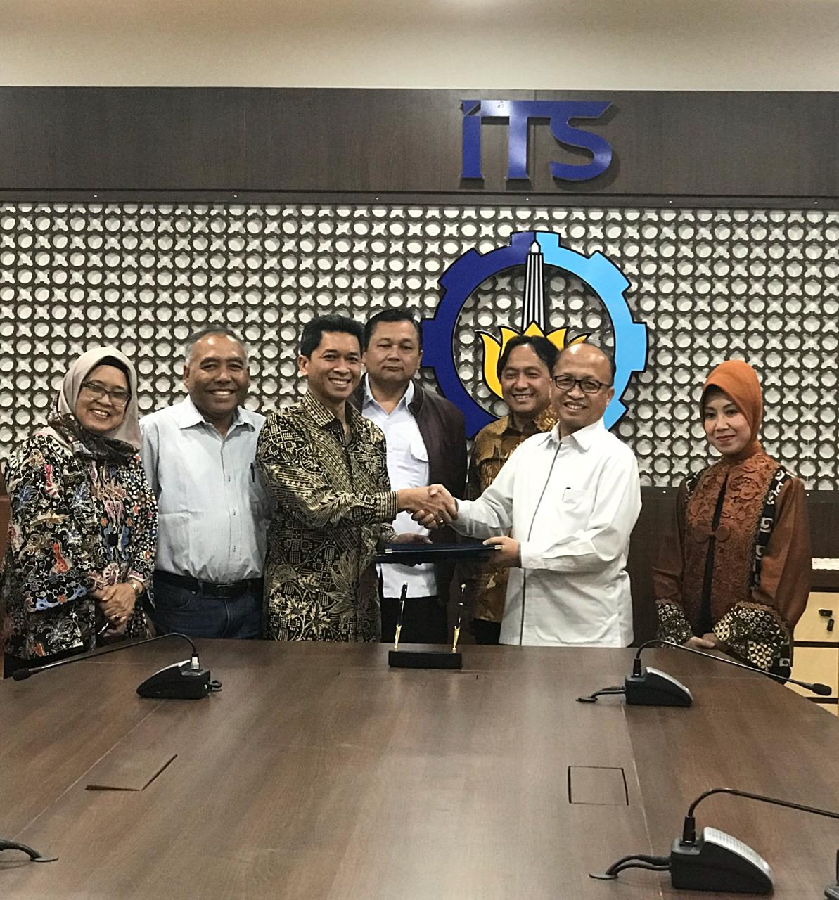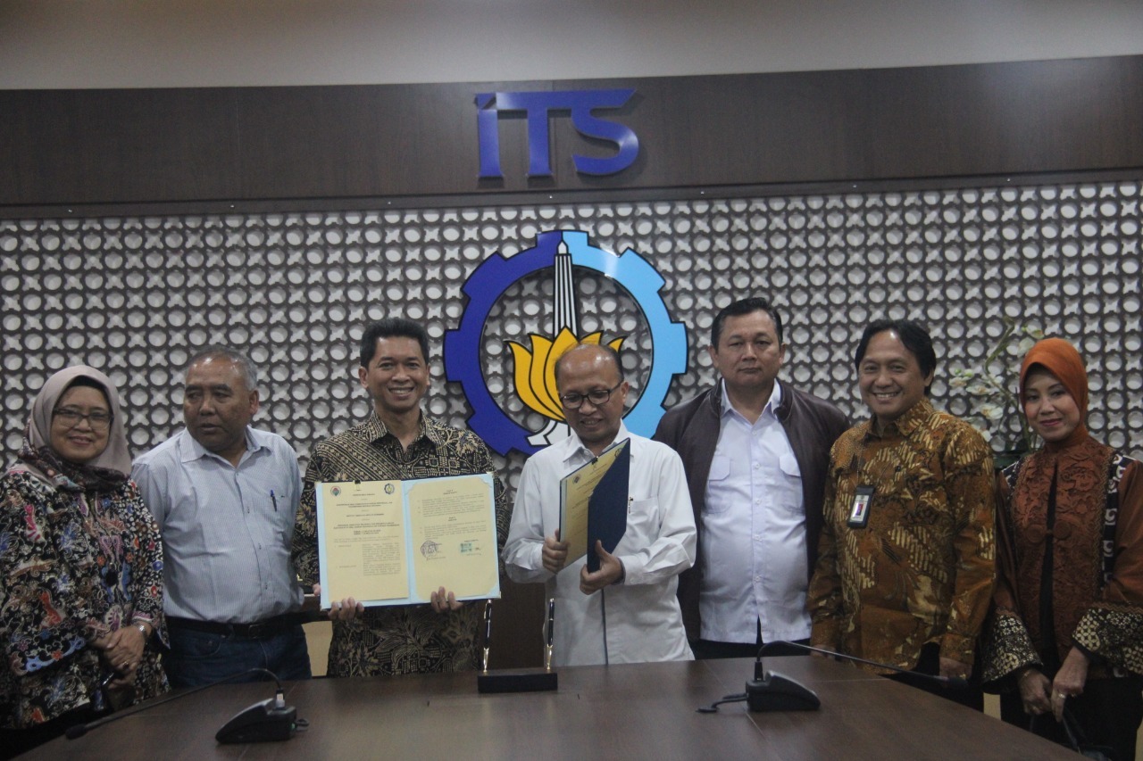 Wakil Rektor 4 ITS Bambang Pramujati (tiga dari kiri) dan Sekjen Kemendesa PDTT Anwar Sanusi (tengah) usai menandatangani MoU di ITS