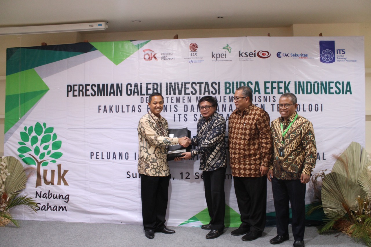 Kampus ITS, ITS News – Institut Teknologi Sepuluh Nopember (ITS) terus meningkatkan kualitas mahasiswanya agar siap menghadapi dunia global. Salah satu untuk mencapai hal itu, ITS bekerja sama dengan IDX Bursa Efek Indonesia (BEI), Otoritas Jasa Keuangan (OJK), dan FAC Sekuritas untuk membuat Galeri Investasi BEI di Departemen Manajemen Bisnis yang diresmikan, Rabu (22/7).