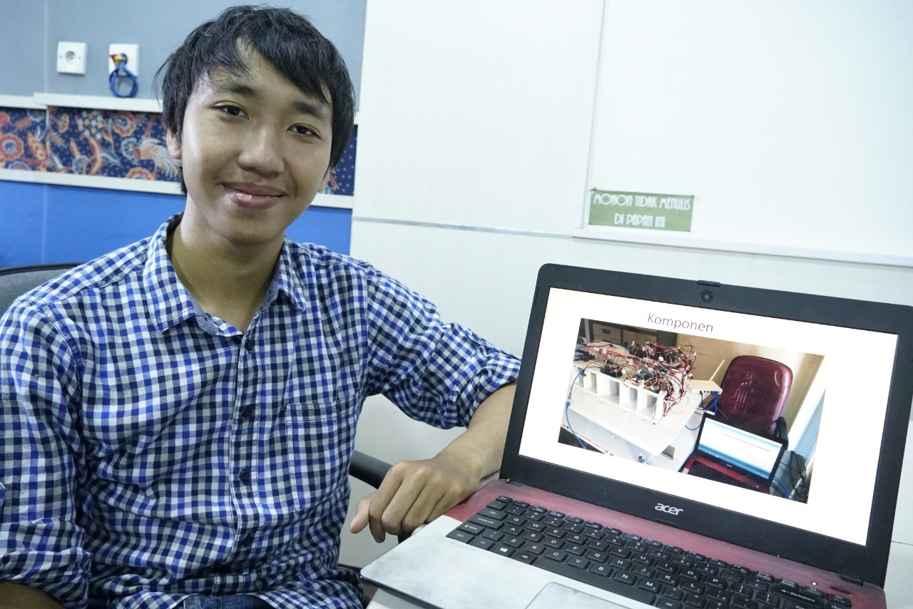 “Perangkat di gerbang berfungsi untuk mendeteksi kendaraan yang masuk, sedangkan yang terletak di atap lahan parkir fungsinya untuk menginput data lahan parkir yang masih kosong atau sudah terisi,” terang mahasiswa angkatan 2015 ini.
