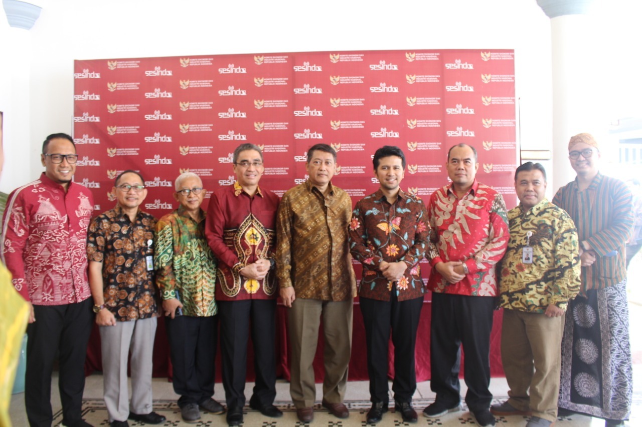 Ketua Pokja Industri Pedesaan KEIN Dr Aries Muftie (lima dari kanan) bersama Wagub Jatim Dr Emil Elistianto Dardak (empat dari kanan), dan Dekan FTIK ITS Dr Agus Zainal Arifin (tiga dari kanan) beserta para pemateri Sesindo 2019